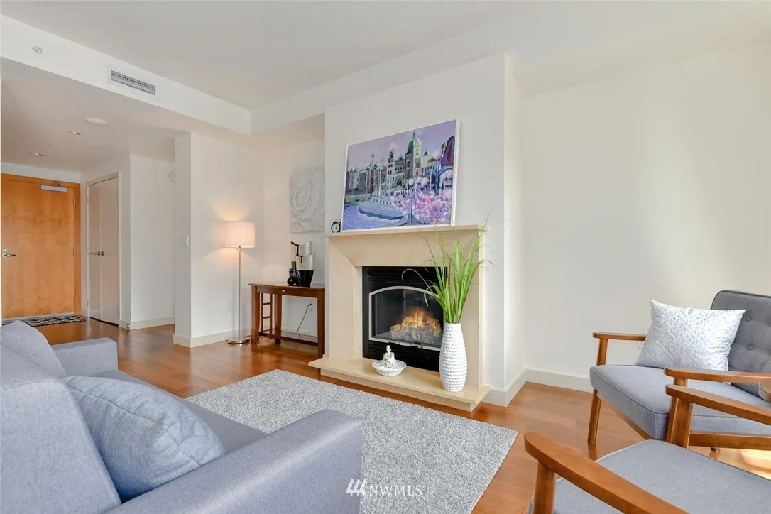 +"PublicRemarks": "This East facing 1 bedroom, 1 bath w/den unit features an offset master bedroom, Private Balcony, floor-to-ceiling windows, built in privacy shades, hardwood floors, granite counters, gas fireplace, and central air conditioning and heating. Building amenities include a full-time concierge/night doorman, secure storage unit, spa, and newly remodeled owners lounge & fitness facility."
