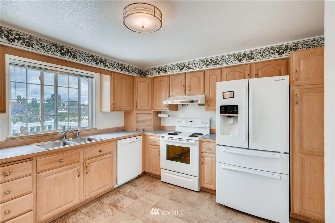 +"PublicRemarks": "Over quarter of acre with partial view of Mt. Rainier. Enjoy your summer BBQ on the large deck off kitchen to fully fenced backyard with many fruit trees and garden area. Keep cool in the summer with central A/C. New carpet and new interior painting; Well-maintained home features open floor plan with spacious living and rec. room; Master with ¾ shower & walk-in closet; Built in whole house gas generator connected to gas pipe; 2 gas fireplaces, ceiling fans, central vacuum, skylight and more."