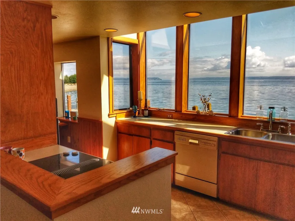 +"PublicRemarks": "On the shore of Puget Sound rests a fabulous Cape Cod beach home w/ 2 decks, 2 kitchens, 2 laundry rms, 2 full baths/ 2 half baths, it won’t take too much creativity to sea all the versatility. Stunning views from each room will help you keep track of the tides & the constantly changing marine traffic. Private drive down ensures privacy for you & just 3 other homes, it's a quick drive/bike/walk to town & the ferry. Great opportunity to own 74ft of private waterfront view property!"