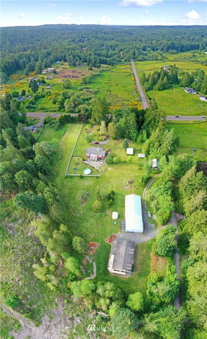 +"PublicRemarks": "Beautiful shy 18 Acres (2 parcels) with Spacious Well-Kept Home just 4 minutes to Kingston ferry and 15 min to downtown Poulsbo! Home sits on 3 acres, plus 15 acres of pasture and forest. This 3 bd 3 ba home positioned to take in the expansive views of nature will keep you content staying in. Amazing detached 100'x40' garage and shop space - big enough for at least 6 cars/RV/boat-also holds a bonus area. Half bath in garage also. Pride of ownership evident & loads of space ready for a new owner."
