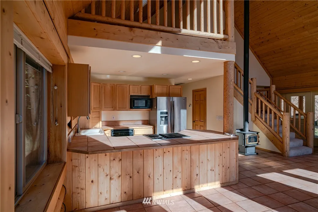 +"PublicRemarks": "Dream mountain lodge less than 4 miles to Leavenworth. Peace and quiet abound w/ mountain views. Enjoy the natural surroundings including breathtaking Enchantment views. Spacious living room w/ wood stove and vaulted ceilings w/ wall of windows. Open kitchen w/ breakfast bar and stainless appliances. One bedroom and full bathroom on main level. Loft area, 2nd bedroom and 3/4 bath on upper floor. Bonuses include detached garage and over $6k of recent updates to the well. Two separate tax parcels."