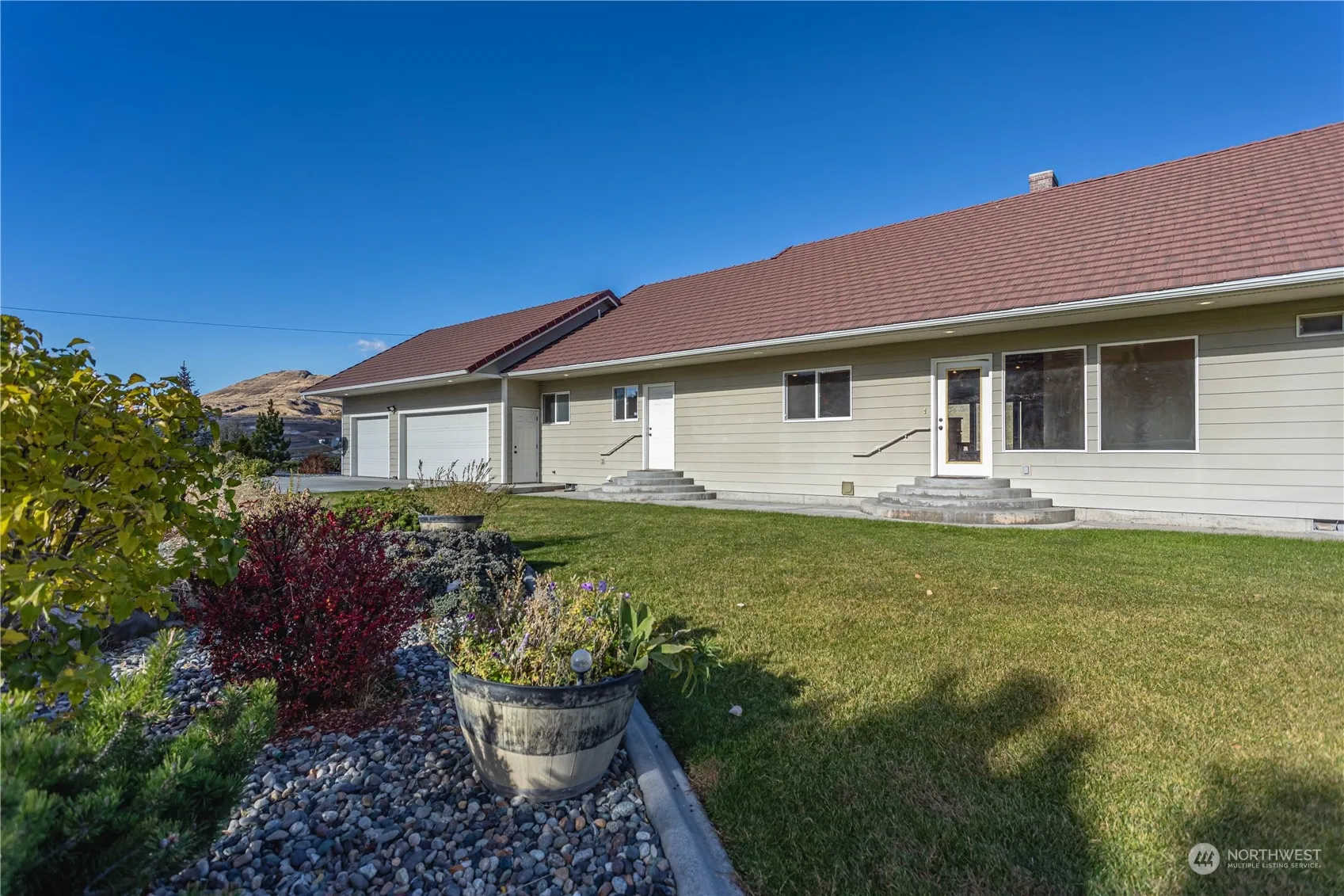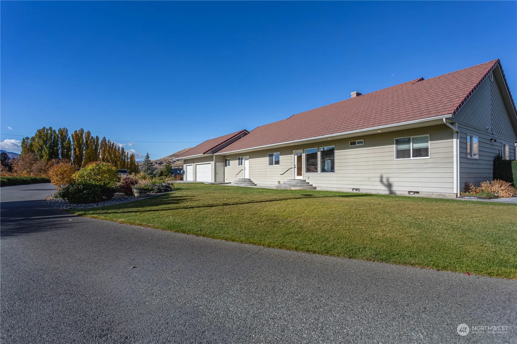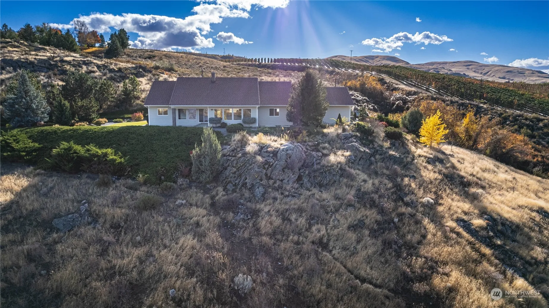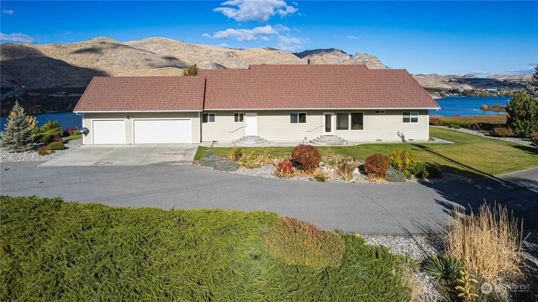 +"PublicRemarks": "PRICE REDUCED $50,000! Enjoy an ever-changing panoramic view of the Columbia River from this elevated homesite. Apple & cherry orchards and a hayfield lie below. This home is secluded at the end of a paved, private driveway. Low maintenance established landscaping and curbed lawn with sprinkler system. Open design with living, dining and kitchen areas under vaulted ceilings. Large view windows and dual sided fireplace dominate the living room. 3/4 bath off large, Primary Bedroom with 2 additional, good-sized bedrooms. Office w/ fireplace and built-in shelving & storage. Cherry wood flooring totally refinished. Heated 3-car garage & new HVAC system. Take advantage of 4 seasons of recreation & sun in NCW."
