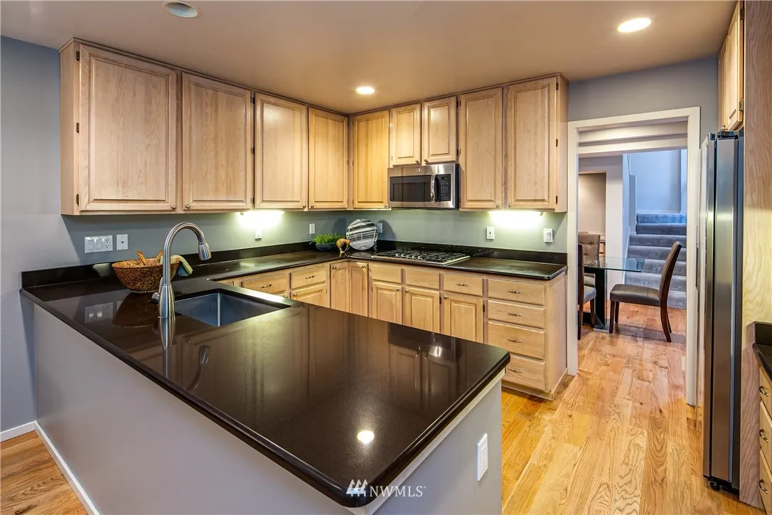+"PublicRemarks": "Tucked alongside Semiahmoo's 15th green, this spacious, updated townhome offers an architecturally intriguing interior & inviting living spaces. Kitchen has all new stainless steel appliances & a nook with lush fairway views. 3 bedroom suites (2 on main floor) & large upper family room. Vaulted ceilings & 4 skylights create an airy feel. Newly refreshed with solid oak floors, modern floor tile, quartz counters & sleek, contemporary lighting, plumbing & hardware. 50-yr synthetic roof is a bonus!"