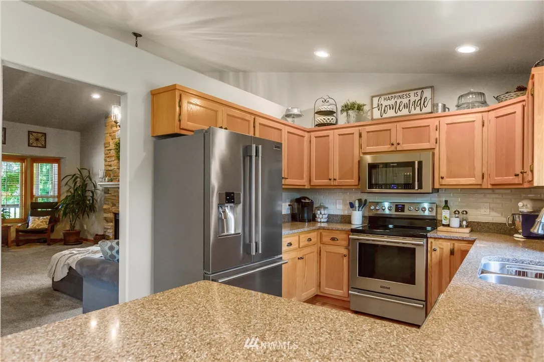 +"PublicRemarks": "4 bed, 2.5 bath home w 3 car garage. Xtra shed w electric. Huge Mstr Bd offers two closets, Full Mstr bath, separate shower and tub. Open concept living w dining, family rm off Gourmet Kitchen, Quartz counter tops and Frigidaire SS appliances, full height back splash. Curl up w a good book near the living room River Rock FP, Tile & Oak floors throughout. lots of Electrical updates. Heat pump and furnace install '17. Step out onto the Back patio fully fenced and private gorgeous landscaped yard."