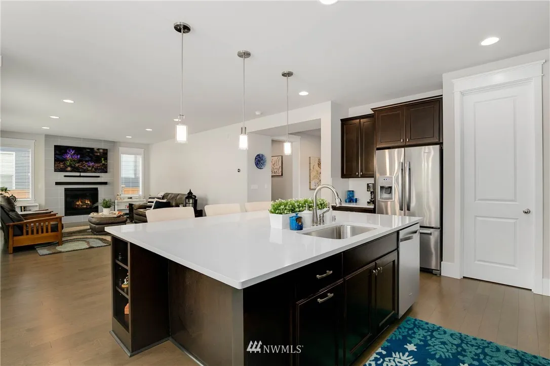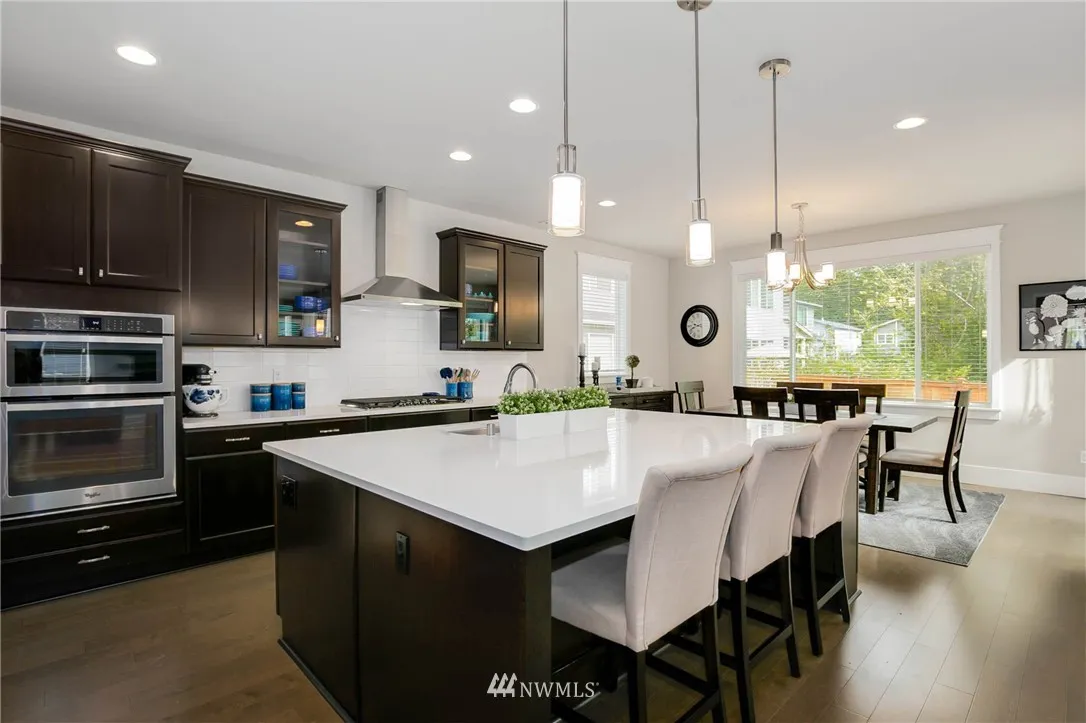 +"PublicRemarks": "Welcome to Evergreen Heights! This better than new resale features high-end finishes top-to-bottom! Bright & open floor plan boasts 9’ ceilings, 8’ doors & extensive millwork throughout. Chef’s kitchen w/ SS appliances, quartz, huge island, designer cabinetry & walk in pantry. Main floor suite with 3/4 bath & WIC. Custom built home office w/quartz. XL laundry rm. Incredible master suite w/ 5 pc bath & double WIC. Perfect cul-de-sac location backing to protected greenbelt. Snohomish schools!"