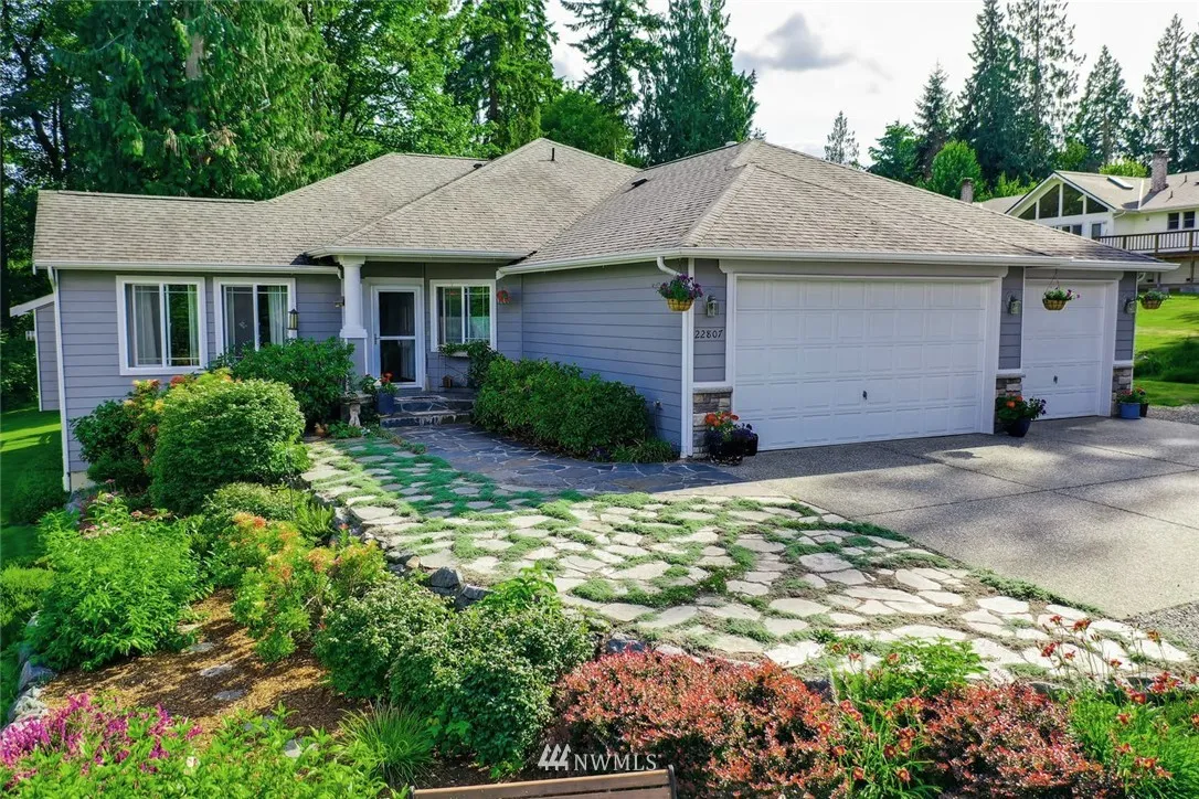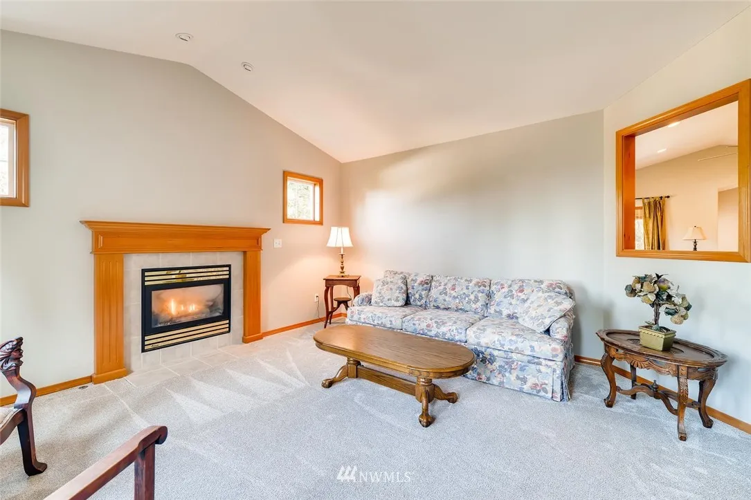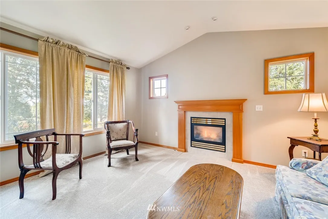 Light, bright, "great room" type floor plan with high ceilings & great natural light. Separate living room with gas fireplace. Master suite includes an oversized walk-in closet and a master bath, with two sinks, and a jetted tub. Additional features are a 3 car garage, fresh paint and new carpet. On a private lane, this home washed in natural light, & feels light & cheery even on those occasional gray Seattle days