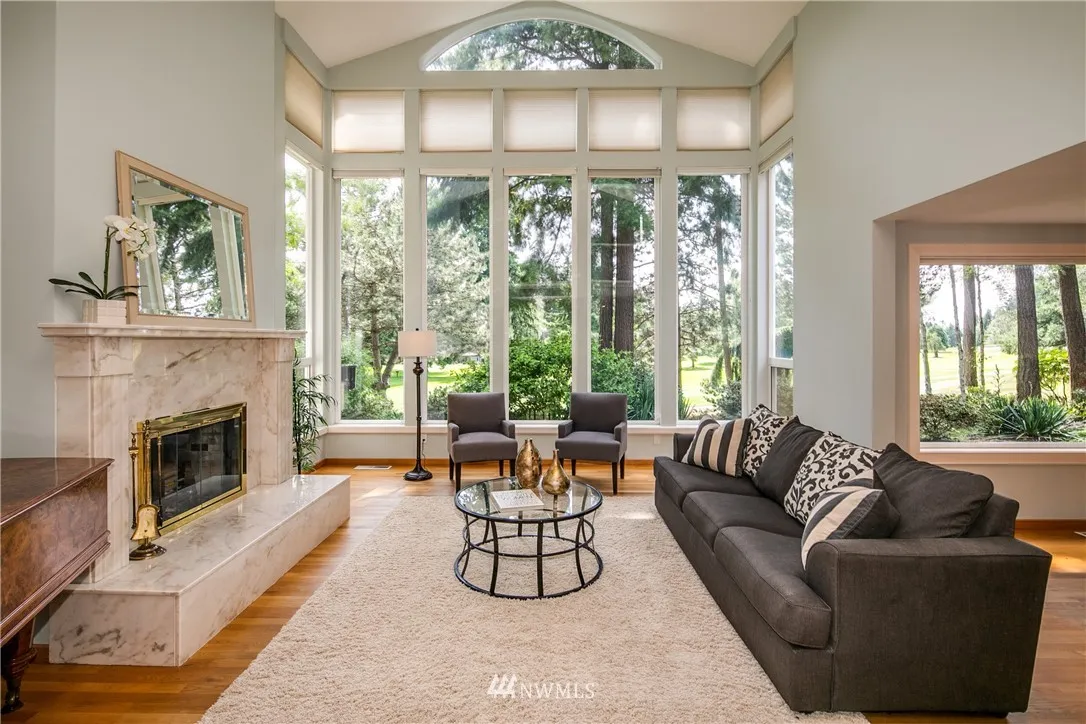 +"PublicRemarks": "This classic Semiahmoo fairway home is nestled among mature gardens in a private setting on a quiet, non-through street. Dramatic cathedral ceilings & floor-to-ceiling windows frame southerly vistas of rolling, emerald fairways. The spacious plan is ideal for entertaining with casual & formal spaces. All bedrooms are on the main floor and have ensuite baths. A large loft with built-in cabinets makes a perfect office or hobby area. Hardwood floors, six skylights, two fireplaces & a near-new roof!"