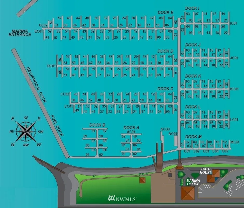 +"PublicRemarks": "44' slip on E dock! Great location, home to one of the best managed Marina's in the PNW. Key-less entry. Full service laundry and shower building. Picnic area with outdoor games, BBQ, seating areas. Wonderful marina store with cafe...and a short walk to the Resort Semiahmoo Hotel. Marina has WiFi, active Yacht Club, & recently resurfaced dock."