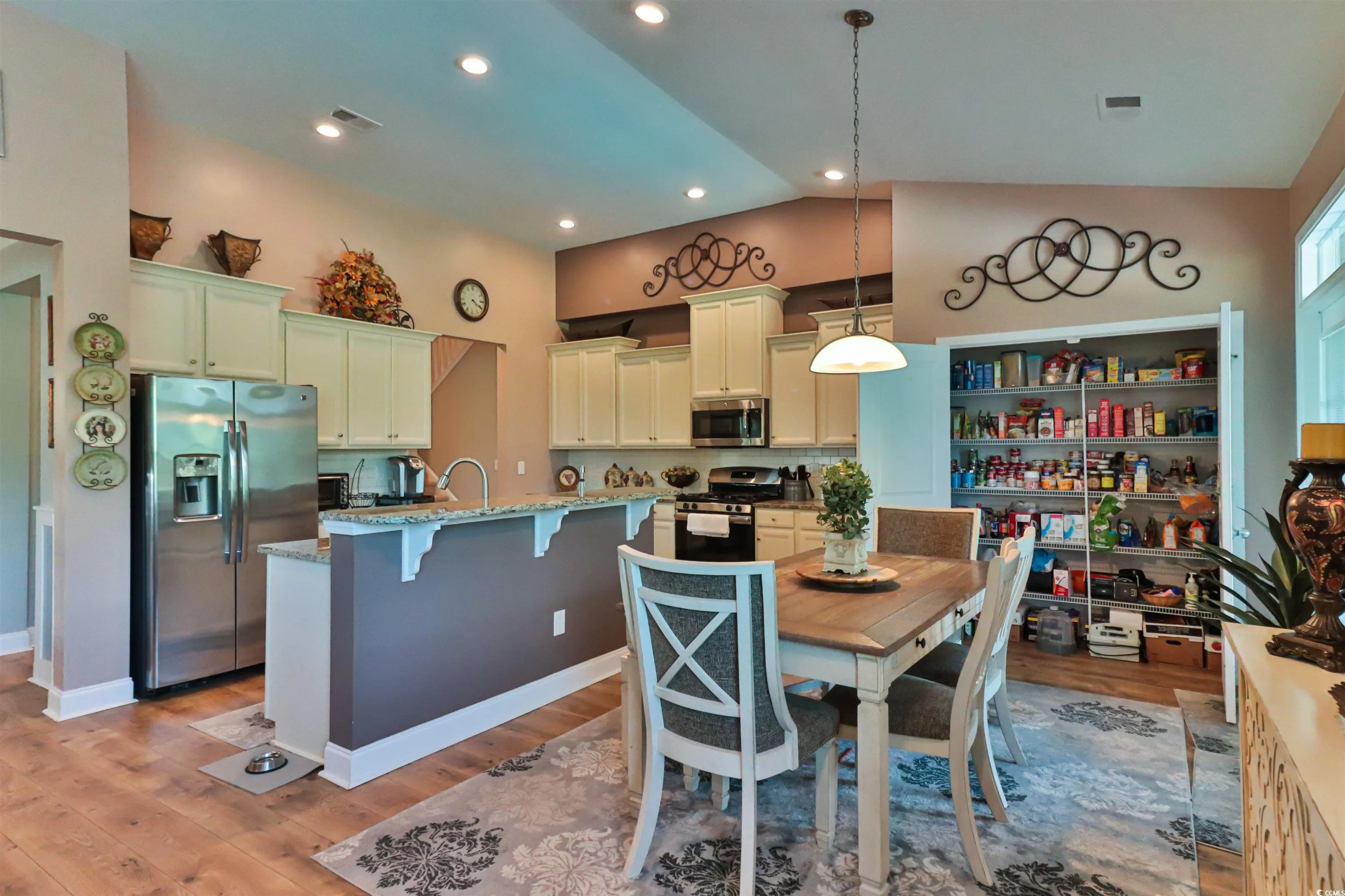 • Interior Features Breakfast Bar,Solid Surface Counters,Kitchen Island,Stainless Steel Appliances