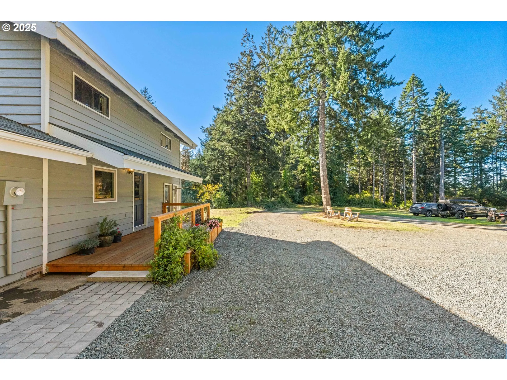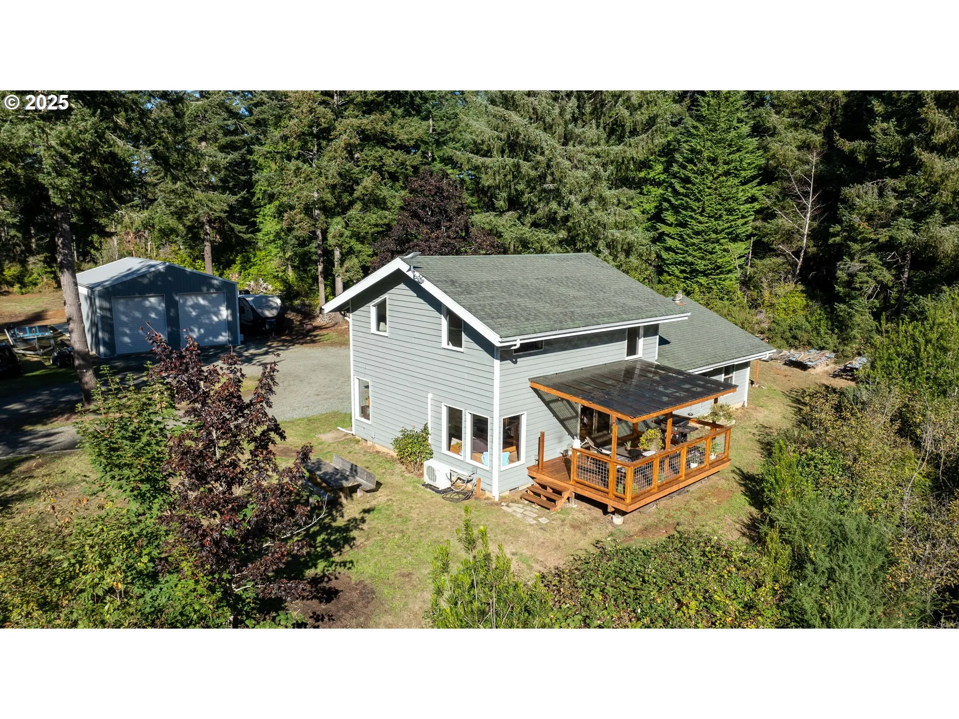 Sitting on 4.70 acres in a warmer pocket of Bandon, this 3 bedroom, 2 bathroom, updated home is perfect for relaxing and entertaining. Upstairs, you’ll find a remodeled bathroom and a versatile loft area, perfect for an office, workout space, or an expanded primary bedroom. All new flooring upstairs was JUST added, giving the space a fresh, modern feel! The main level features bamboo flooring, an updated kitchen with granite counters and a spacious walk-in pantry, plus two bedrooms and a full bathroom, all with new paint. Step outside to brand new front and back decks (completed summer 2025), ideal for barbecues, gatherings, or simply enjoying the peaceful surroundings. Outdoors, the property offers something for everyone: a private pond, a 28x34x14 shop built in 2021, an attached carport, and even a basketball court behind the shop with plenty of yard for activities. Lovingly cared for by the same owners for over a decade, this home shows true pride of ownership inside and out. Whether it’s hosting friends, working on projects, or enjoying nature, this home has it all. Just minutes from town and the coast, this is a rare chance to own a move-in ready home with space, upgrades, and plenty of charm!