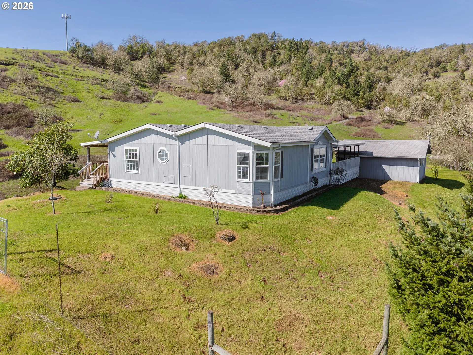 Welcome to this incredible country retreat, perfectly positioned to capture spectacular sunrise and sunset views over the Cascade foothills and the serene valley below. This property offers the ultimate in privacy and natural beauty, combining expansive pasture and trees with all the comforts of a well-appointed home—including the essential connection to the digital world. With high-speed internet available, you can seamlessly work from home and stay connected while enjoying a tranquil, secluded lifestyle. The heart of the home is a gourmet kitchen that features a large central island and a luminous skylight that floods the space with natural light, perfect for entertaining. The open-concept design flows seamlessly into the dining and living areas, with a grand great room lined with windows that ensure that the spectacular views are the centerpiece of every gathering. The home offers a peaceful escape in the primary bedroom suite, which includes a luxurious bathroom with a soaking tub—a perfect place to unwind while enjoying the tranquil surroundings. Additional bedrooms are thoughtfully designed to maximize comfort and views. Step outside onto the expansive covered decks, where you can take in the incredible views or simply relax in the fresh country air. For the hobbyist or small business owner, the property includes a large shop and a separate garage, providing ample space for projects and storage. There’s also RV parking for your recreational vehicles. The land is a true gem, featuring a seasonal creek as well as a variety of established fruit trees. The property is fenced and cross-fenced, making it ideal for horses or other livestock. Despite its serene, secluded feel, you’re just a short drive from local shopping and services in Roseburg. This is more than just a home; it’s a lifestyle. Don’t miss this rare opportunity to own your own piece of paradise with everything you need to live, work, and play. Schedule your private tour today!