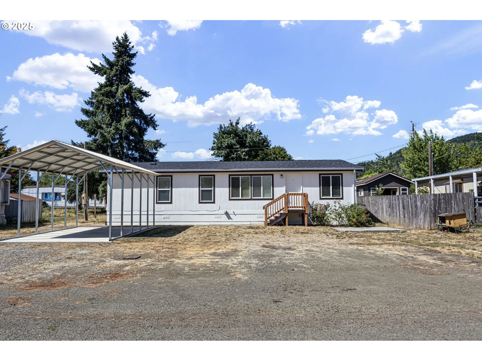 Like-new 2022 home! This 3 bedroom, 2 bath residence offers vaulted ceilings throughout, creating a bright and open feel. The kitchen features rich wood cabinetry and abundant counter space, perfect for cooking and entertaining. Enjoy a spacious backyard, RV parking, and covered car parking for year-round convenience. Ideally located just 30 minutes from Roseburg and 25 minutes from Cottage Grove, this home combines modern comfort with small-town charm.