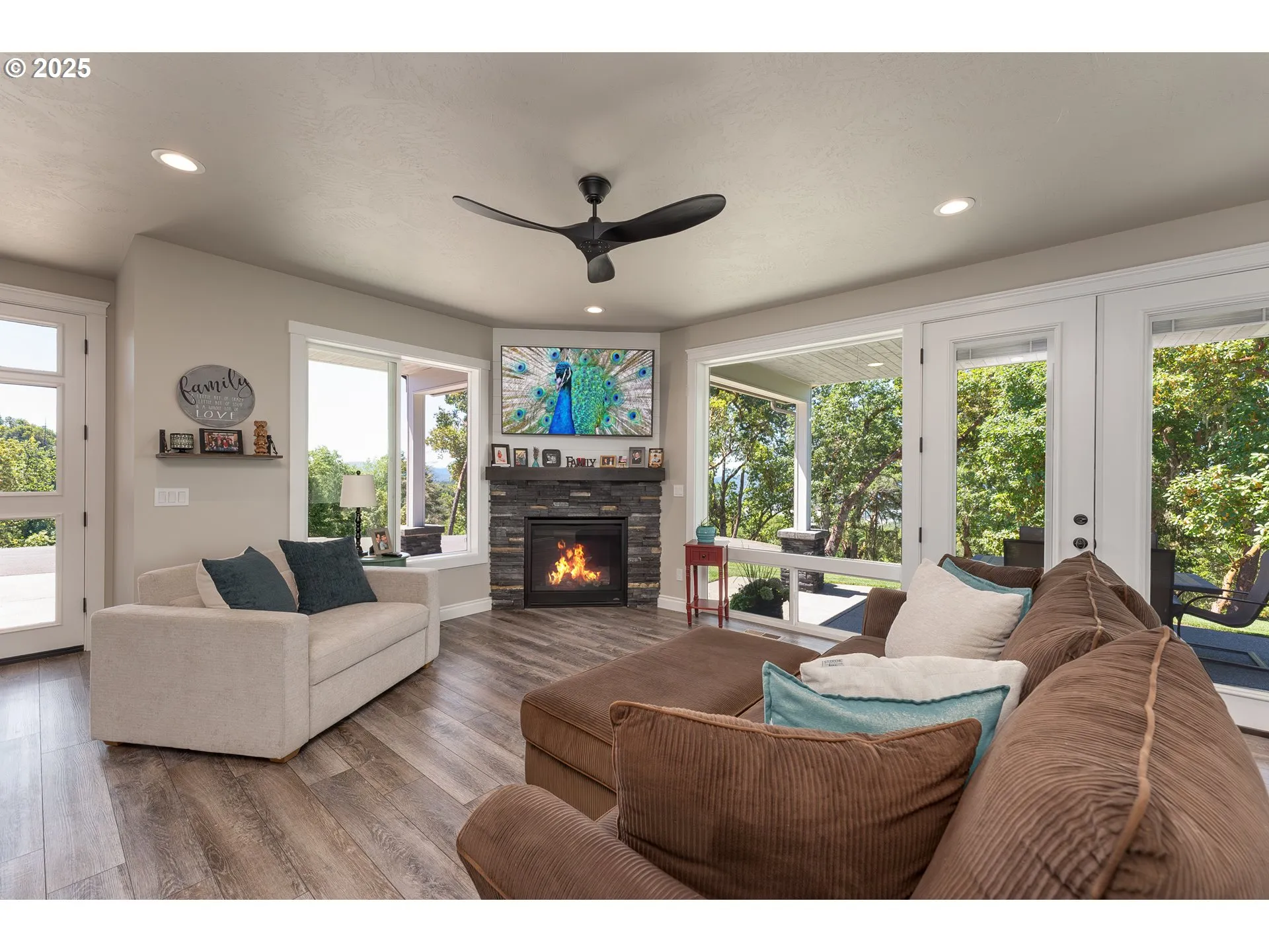 Enter through the gates of Winchester Ridge and follow your private drive to this beautifully crafted custom home set on 2.36 serene acres. Offering 3 bedrooms plus a flexible bonus room (or 4th bedroom), 2.1 baths, and 2,104 SF, this home blends elegance, comfort, and space to unwind. Inside, soaring ceilings, expansive windows, and abundant natural light create a bright, open atmosphere. The seamless floor plan is ideal for both everyday living and entertaining. French doors lead to a stunning covered lanai with tongue-and-groove ceilings and recessed lighting — perfect for year-round outdoor living. The kitchen is both stylish and functional with quartz countertops, custom cabinetry, GE stainless steel appliances, a 5-burner gas cooktop, built-in oven, pantry, spacious eat bar, and hot water recirculating system. The main-level primary suite is a private retreat featuring French doors to a peaceful patio and a spa-inspired bath with soaking tub, tiled walk-in shower, dual sinks, and walk-in closet. Upstairs are two generously sized bedrooms with a Jack-and-Jill bath plus a versatile bonus/game room. Enjoy lightly wooded acreage, beautiful views, manicured landscaping with sprinklers, an oversized 2-car garage with workshop space, two-zone A/C, and a spacious paved driveway. Immaculate and move-in ready — a rare opportunity for privacy, comfort, and refined living.