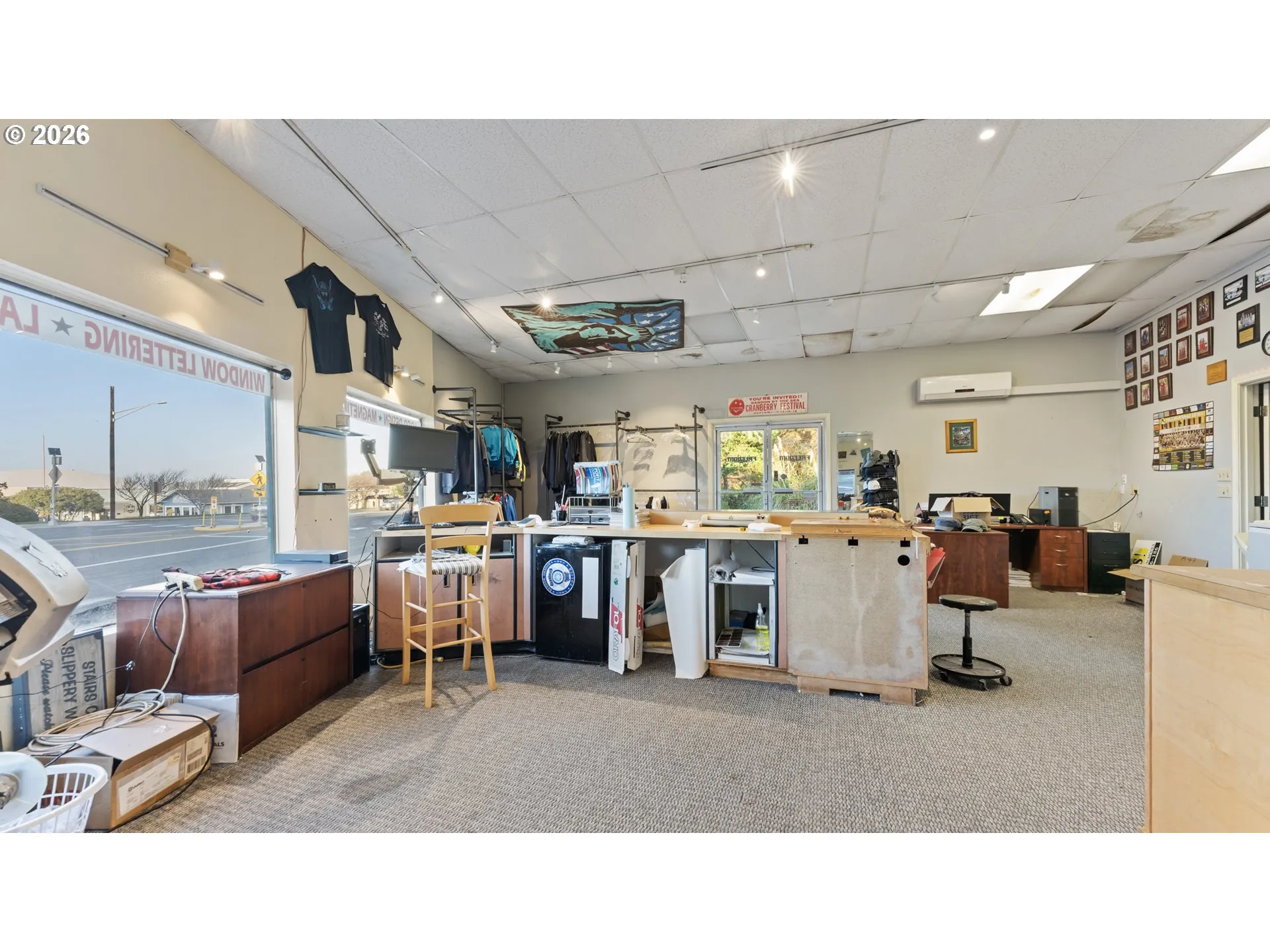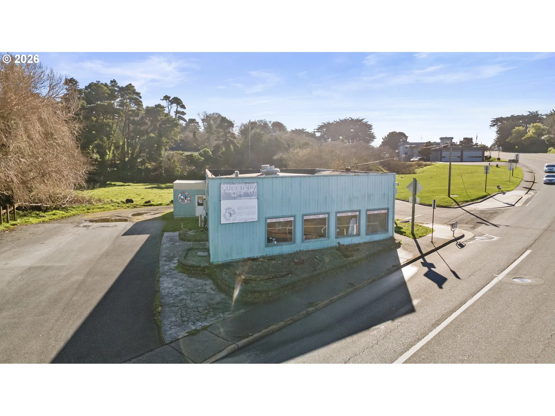 Prime C-2 commercial opportunity directly across from Downtown Bandon with premium Highway 101 visibility and access. Positioned steps from shops, galleries, restaurants, and eateries, and just minutes to Bandon’s beaches and coastline. Property sits on two tax lots and offers an almost clean-slate opportunity to continue the existing use or re-imagine the space entirely. Large shop building features a shop door, multiple air compressors, two mini-split systems, and a full bathroom with tub/shower. Approximately $100,000 in business equipment – including embroidery and screen-printing machines – is included in the sale and conveyed with the property; equipment value is not included in the list price. Business not currently operating due to personal reasons. A separate 24-hour, two-bay dog wash is attached to the exterior and is currently in use, offering easy upside and potential ongoing income. City of Bandon owns the adjacent lot, with discussions regarding future parking development to support downtown. New crosswalk installed at the corner enhances pedestrian accessibility. C-2 zoning allows for a wide variety of permitted and conditional uses including retail, service, light industrial, and potential mixed-use redevelopment. Excellent visibility, strong traffic counts, and a location positioned to grow alongside classic Bandon. See additional documents for C-2 zoning uses or request a copy. Floor-plan, video, and 3-D Tour available.