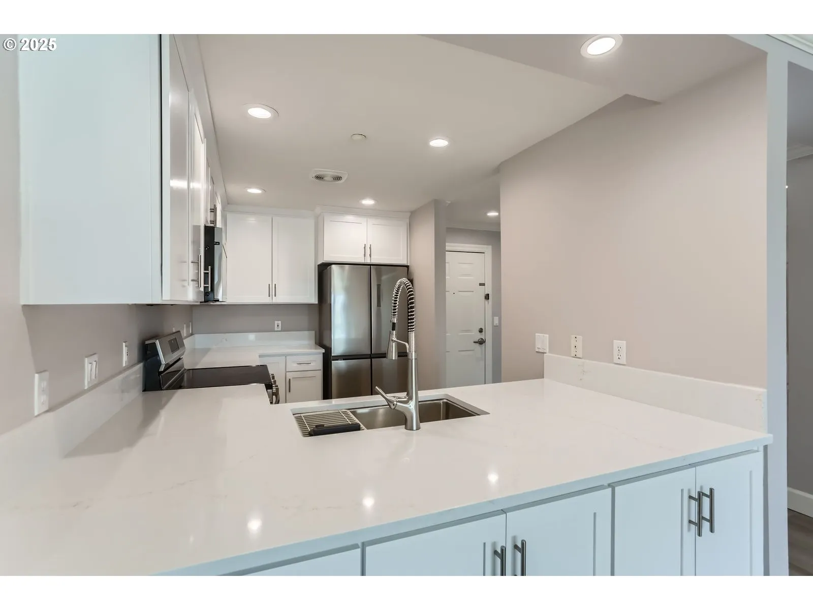 This south facing second floor one level condo has been completely updated, offering brand new finishes throughout. Enjoy the fresh look with new interior paint, updated plumbing & gorgeous quartz countertops in the kitchen & baths. The kitchen also boasts additional cupboards for extra storage & convenient soft-close technology on all cabinets. Appliances are all brand new, and a stacked washer & dryer are included, adding to the home’s convenience. The shower stalls have been reglazed & new quartz countertops installed in the baths also and the furnace is approximately 10 years old, you’ll have peace of mind knowing the home’s systems are in great shape. Storage won’t be an issue either with the additional kitchen cupboards & the dedicated storage unit in the garage. There’s even a peek-a-boo view to enjoy. This home is ready for you to move in and make it your own! Great location, close to downtown Vancouver and walking paths