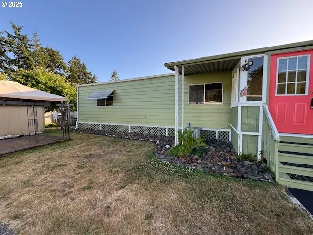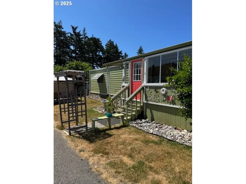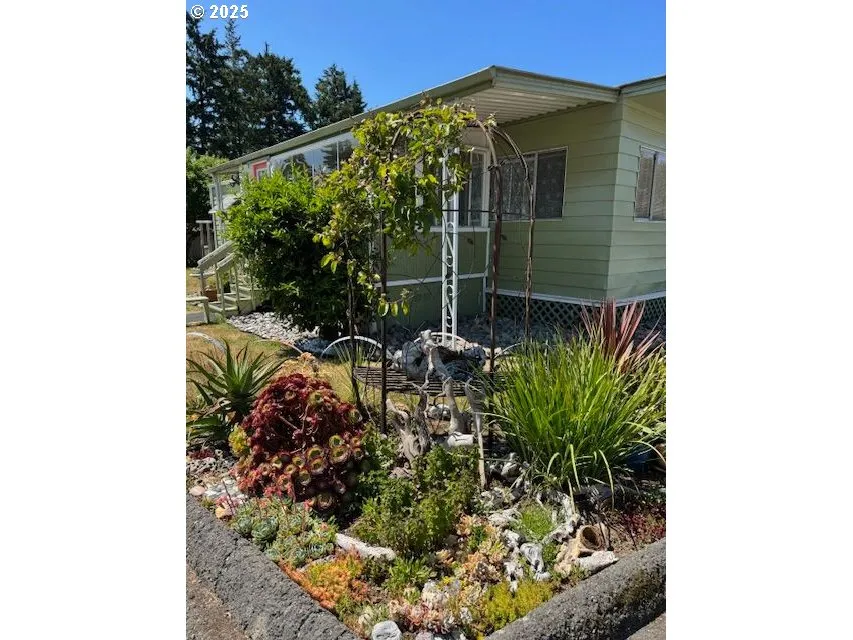 Adorable manufactured home in 55+ park. Buyer must be approved by park manager. Has 2 additions 1 laundry room and 1 sunroom. LVP flooring and new Exterior paint in 2024. Raised garden beds, fully fenced yard and awesome landscaping. Light and bright inside with an amazing yard. Just needs a few updates and a new owner! Come live near the beach, shopping and Restaurants. Space rent is 475.00 a month and includes sewer, trash and water. Big Corner Lot and Comes with a gazebo for patio relaxation and visiting. Very nice welcoming community. Call to see it today!