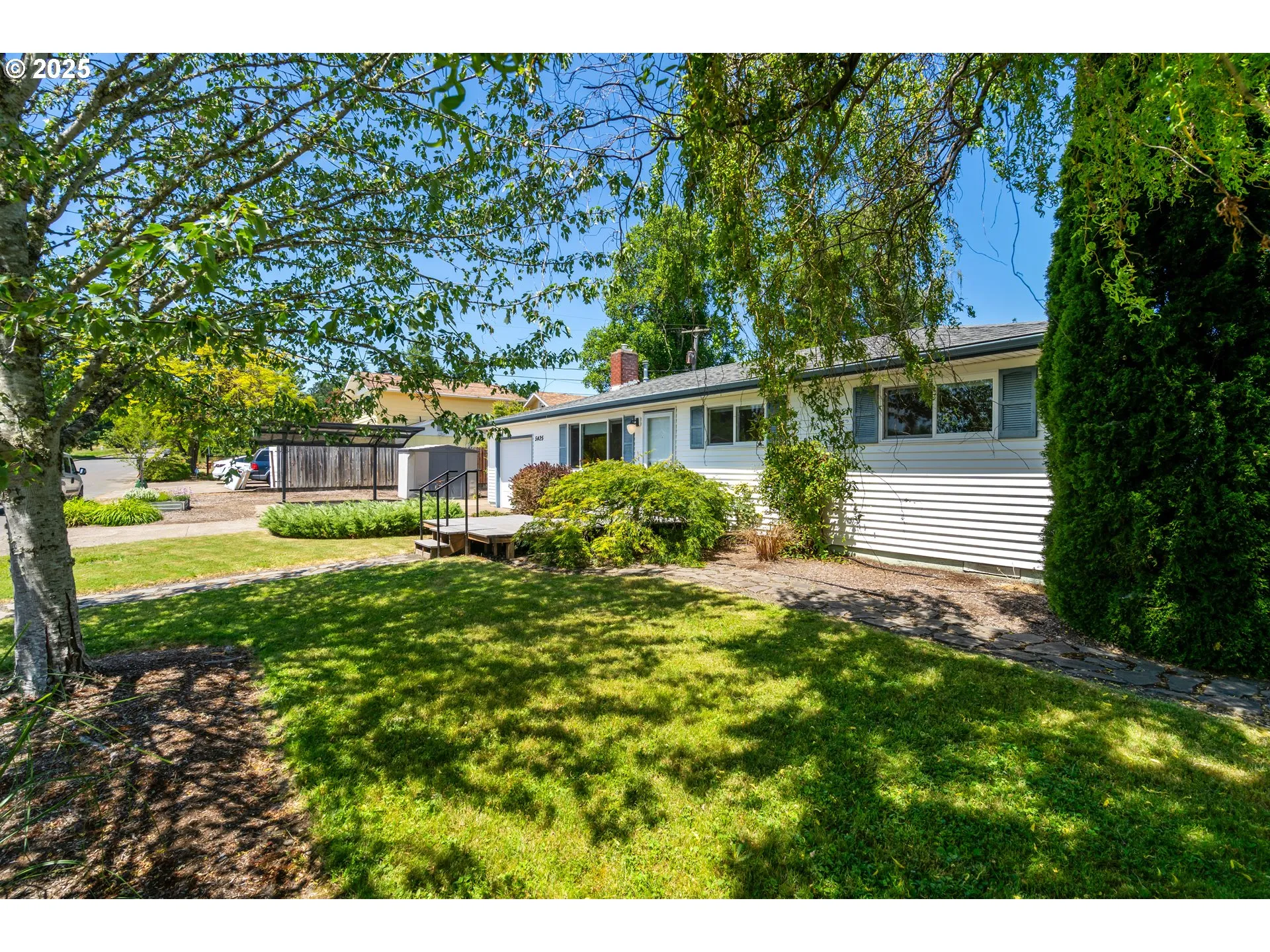 This lovingly cared for home has been well maintained and thoughtfully updated. Guests are greeted with hardwood floors and a fireplace with a gas insert in the living room. The light and bright kitchen has a large skylight, solid surface countertops, under mount sink and double oven. A bonus room and mudroom are directly off the kitchen and make for great flexibility living. Off the mudroom and through the custom glass feature wall is a large family room with stamped tin ceilings, a mini split system and a sliding door leading to the back yard. There are 3 comfortable bedrooms and a bathroom off the living room. A gardeners delight the lushly landscaped yard is fully fenced, has been well maintained and even has a cherry tree! Situated in a peaceful neighborhood this cozy home is close to all Corvallis and Philomath have to offer.