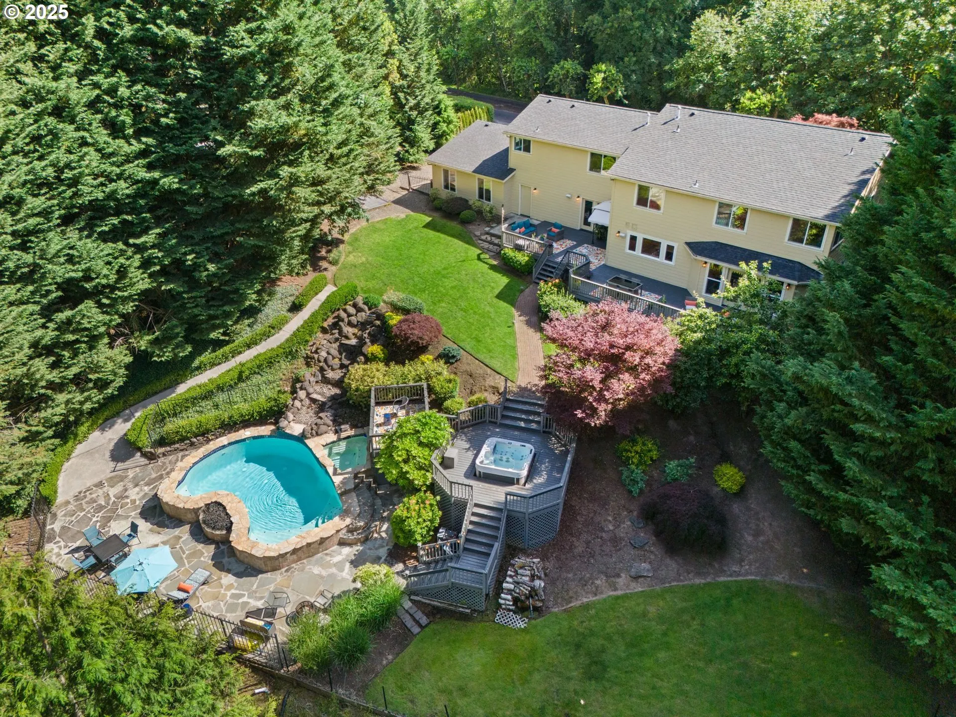 Now offered under $1M, this Sherwood Hills retreat blends privacy, space, and Northwest lifestyle living on .8 acres of beautifully maintained, fenced grounds backing to greenspace.Designed for entertaining and everyday comfort, the property features multiple decks, a jacuzzi, and an in ground pool, creating a true backyard escape. Seasonal enjoyment awaits with apple, pear, and fig trees plus a productive blueberry bush.Inside, the traditional layout offers warmth and functionality with hardwood floors, built-in shelving, and a granite-center island kitchen. Living spaces include a main floor entertainment room, a welcoming living room with gas fireplace, and a formal dining room with French doors opening to newly painted decks.A 3 car garage and RV parking provide flexibility for vehicles, hobbies, and storage.Enjoy the feeling of peaceful seclusion while remaining just minutes from shopping, I-5, and I-205.A rare opportunity to enjoy privacy, convenience, and lifestyle in one exceptional property.