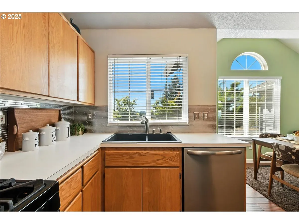 Cutie Patootie Ranch on an 8,151 sq ft lot with an automatic gate! Tiled floored Atrium Style Sunroom/Playroom/Formal Dining Room together with Angled Vaulted Ceilings and corner gas fireplace make this home uniquely stylish. Kitchen boasting glass tile back-splash. Engineered hardwood in Kitchen, Dining Room, Halls and Living Room. Primary Bedroom Suite and 2nd Bedroom feature brand new beautiful carpeting. Center Living room with modern Ceiling Fan and shelving. Private, professionally landscaped, fully fenced yard with nice Utility Shed for lawn equipment. Forced Air heat and A/C with upgraded full house air filter. Located within blocks to I-500 connecting to 1-5 gives you access to every area of Vancouver easily. Ideal for any new homeowner or downsizer! Don’t miss out!
