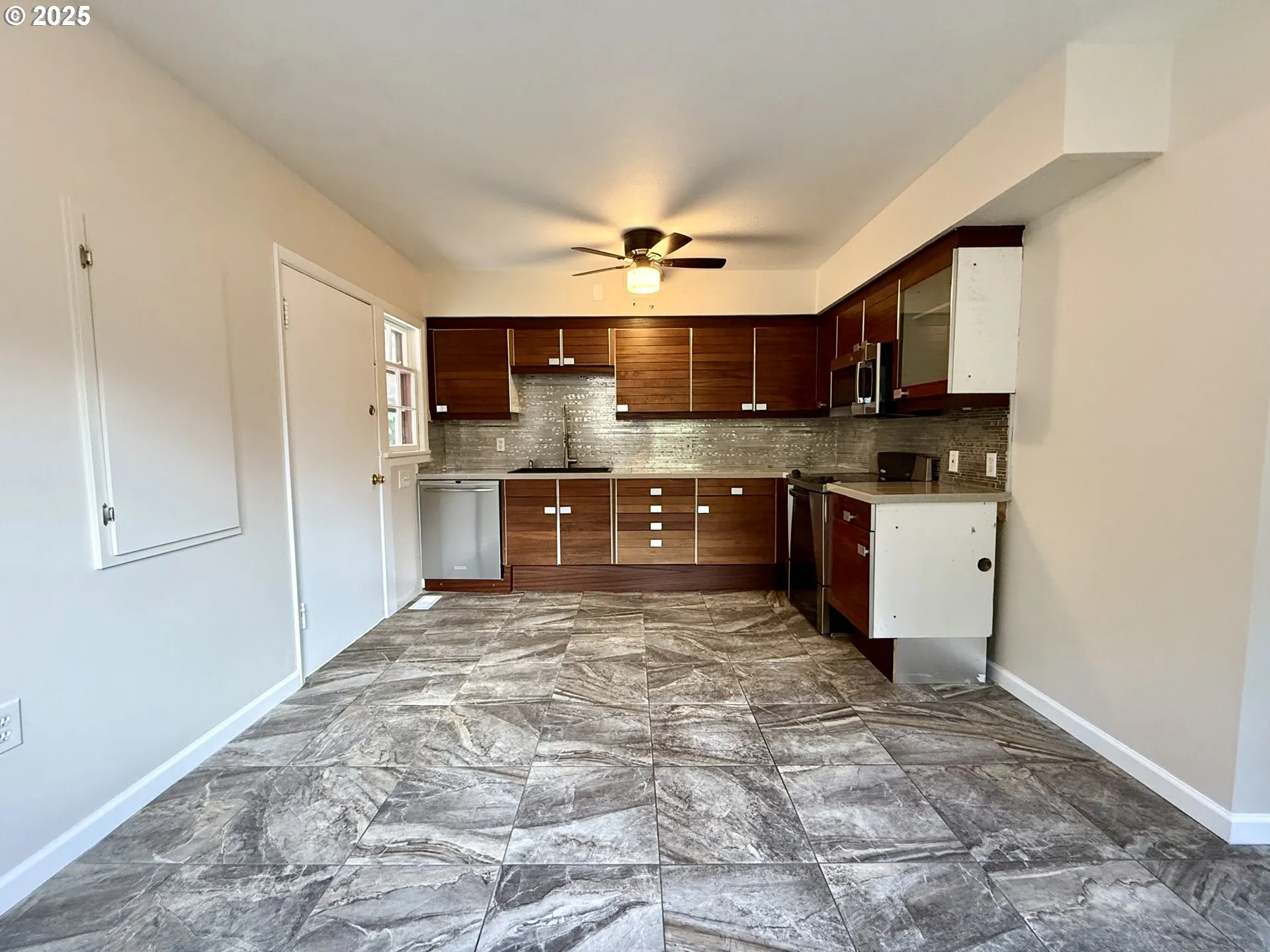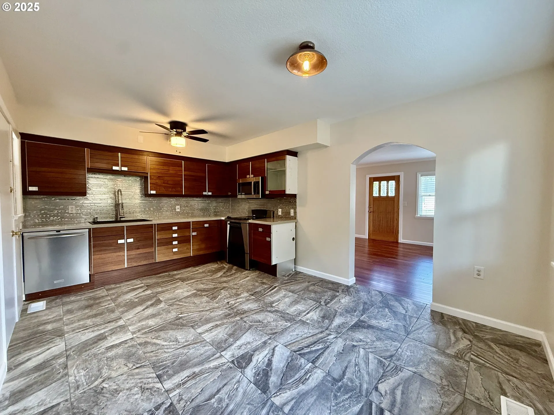 Welcome to this adorable 2-bedroom, 2-bathroom home! Recently updated, this single-level residence boasts a spacious living room with beautiful wood floors and an open-concept kitchen featuring modern finishes with tile counters, a stylish backsplash, and stainless steel appliances. Enjoy meals in the cozy dining area that adjoins the kitchen. The primary bedroom offers a convenient continental bathroom, while the hall bathroom is equipped with a luxurious walk-in shower adorned with a gorgeous tile surround. Step outside to a covered back patio and a fenced backyard, perfect for relaxation or entertaining. Additional highlights include a detached single-car garage with a workshop area, a woodstove, and laundry, alongside convenient RV parking. With close proximity to local amenities, parks, schools, and easy access to major highways, this home combines comfort and convenience for effortless living!