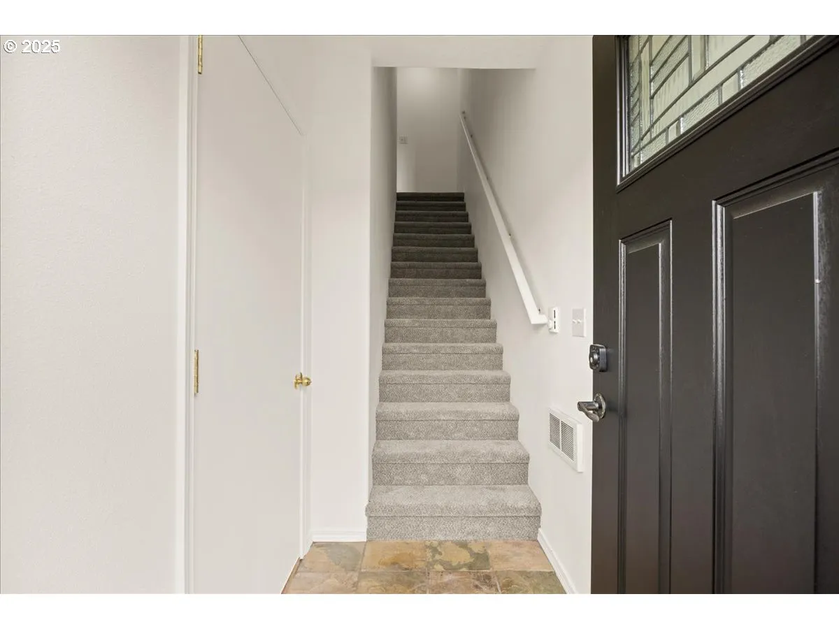 Welcome to 8527 N Princeton St, a beautifully updated row house in the heart of Portland’s vibrant St. John’s neighborhood. This charming two-bedroom, one-and-a-half-bath home offers the perfect blend of comfort, style, and convenience. Inside, you’ll find brand new LVP flooring in the kitchen, dining area, and both bathrooms, along with super cozy new carpet everywhere else. Fresh paint, updated smoke alarms, new kitchen and bathroom hardware, new quartz countertops, a brand new roof with extended warranty, a new water heater, and an efficient minisplit system for heating and cooling complete the fresh, move-in-ready feel. The kitchen and dining room flow into a bright, open living space, perfect for everyday living and entertaining. A convenient half-bath is located on the main floor for guests. A sliding door off the dining area opens to a private, fenced patio—great for relaxing or letting pets enjoy the outdoors. Upstairs, two spacious bedrooms are connected by a Jack and Jill bathroom, each with generous closet space. The first level features a welcoming entryway and an oversized garage with plenty of space for parking, storage, or even a home workshop. Enjoy beautiful views of the iconic St. John’s Bridge and the Willamette River from inside your home, all while being just moments from parks, restaurants, shops, and the riverfront.