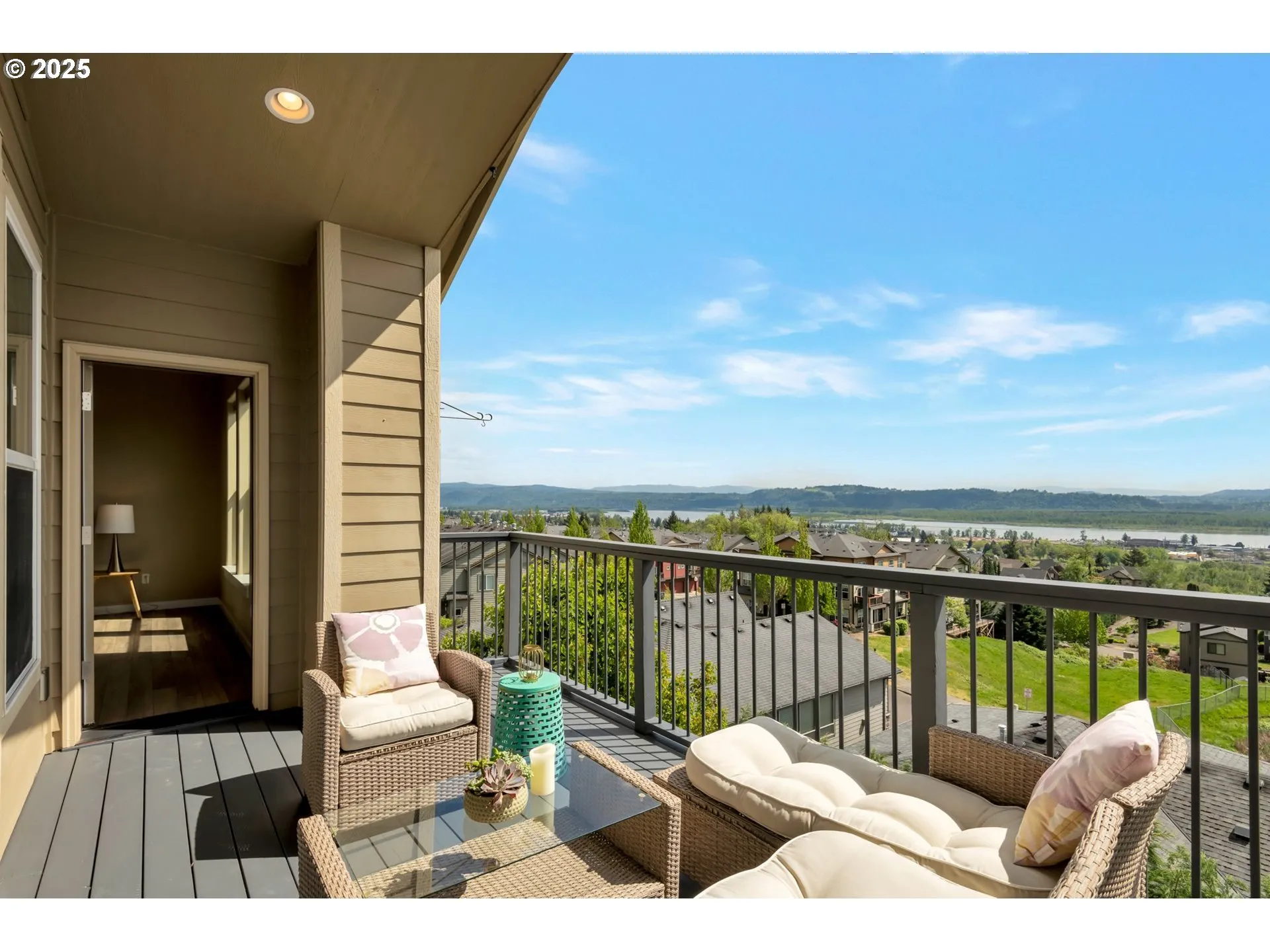 Stunning 4-Bedroom Home with Panoramic River, City, and Mt. Hood Views. Wake up to breathtaking views in this exceptional 4-bedroom, 3-bath home, perfectly positioned to capture sweeping vistas of the river, city skyline, and majestic Mt. Hood. Nearly every window frames a postcard-worthy scene, offering natural beauty in every direction. Situated next to a peaceful green space with no neighbor on one side, this home backs onto a small park complete with walking trails—ideal for morning strolls or evening relaxation. The main level features two generously sized bedrooms, each with its own private full bath, offering comfort and convenience for guests or multi-generational living. The kitchen is designed for both style and function, showcasing stainless steel appliances, granite countertops, and a tasteful tile backsplash. Some appliances are newly installed, and the home features updated carpet and flooring throughout. Downstairs, you’ll find a spacious family room—perfect for entertaining or relaxing—along with two additional bedrooms and a full storage room, providing ample space for every need. Sought after Camas School district is one of the more desirable features of this amazing home. Close to downtown Camas for shopping, restaurants and modern conveniences and close to many walking trails. With unmatched views, thoughtful layout, and desirable location, this home is a rare opportunity you won’t want to miss.