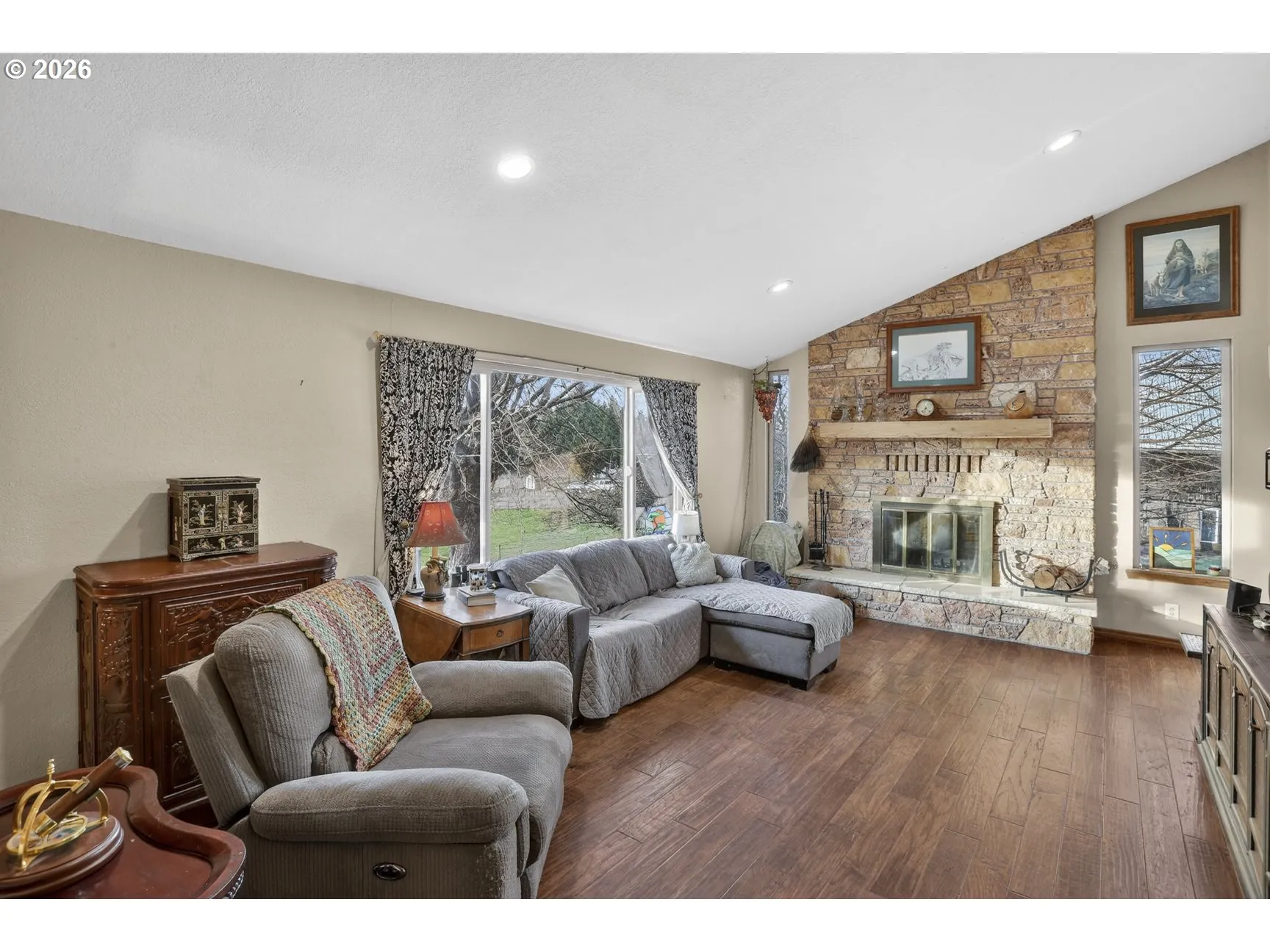 Welcome to a peaceful, fully fenced property on just under 5 acres—perfect for anyone dreaming of space for animals, hobbies, or simply breathing room. Enjoy beautiful pasture, a powered barn with livestock stalls, and a spacious 2-bay shop with electricity plus a carport. Inside the split-level home, the bright kitchen with island and eat-in dining flows to a formal dining room and a welcoming living room with a fireplace and stunning mountain and Columbia River views. Upstairs features the primary suite and two comfortable bedrooms. The lower level adds a large family room with a second fireplace, laundry, and a 2-car garage. A warm, functional home offering serene country living.