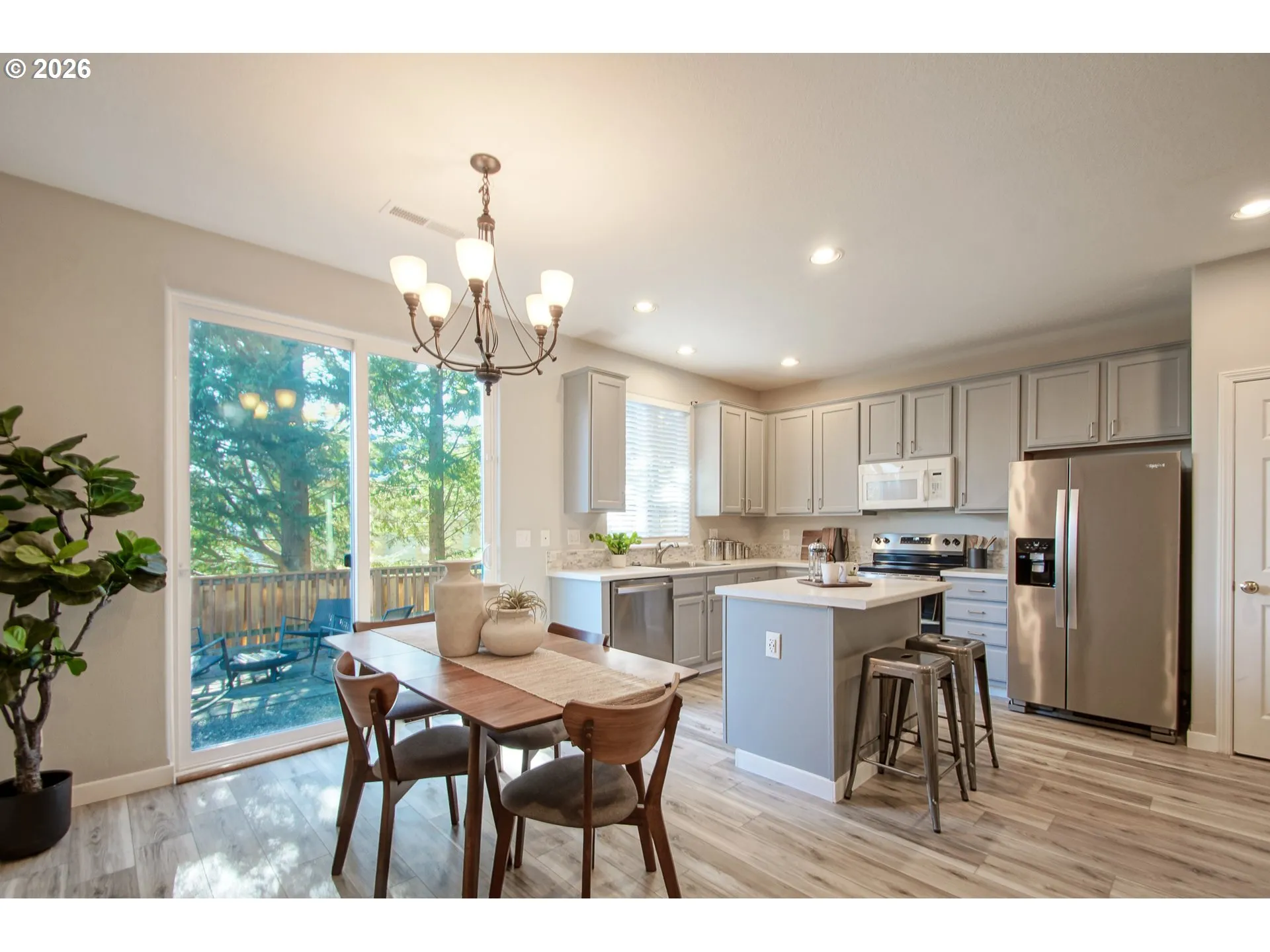 Open Sat 2-4! The beautiful updates make this home stand out, and the open floorplan makes living easy! You’ll appreciate that this open kitchen has had a complete makeover (2024) with new counters, new sink and fixtures, stainless appliances, and fresh painted cabs. (Kitchen is plumbed for gas, BTW.) All three baths have also been refreshed with new fixtures and tile floors, and a completely luxe remodel of the primary bath in 2025. That bath is so pretty, like a fancy hotel! Throughout the home, new luxury vinyl plank floors are in all rooms (2024), new carpet on the stairs (2025), and fresh interior paint. The new slider (2024) opens from the dining room out to the fenced private backyard, which is a great space for outdoor cooking, dining alfresco, container gardening or splashing in the kiddie pool on the patio. The exterior is maintained by the HOA including new roofs in 2022, fresh exterior paint in 2023, and front yard landscaping. This tree lined neighborhood is a gem with highly rated Beaverton schools, close to Graf Meadows Park, the Rock Creek trail, all that PCC Rock Creek has to offer, and Bethany Village nearby! Get in and see it…offer deadline is Mon, Feb 9 at noon!