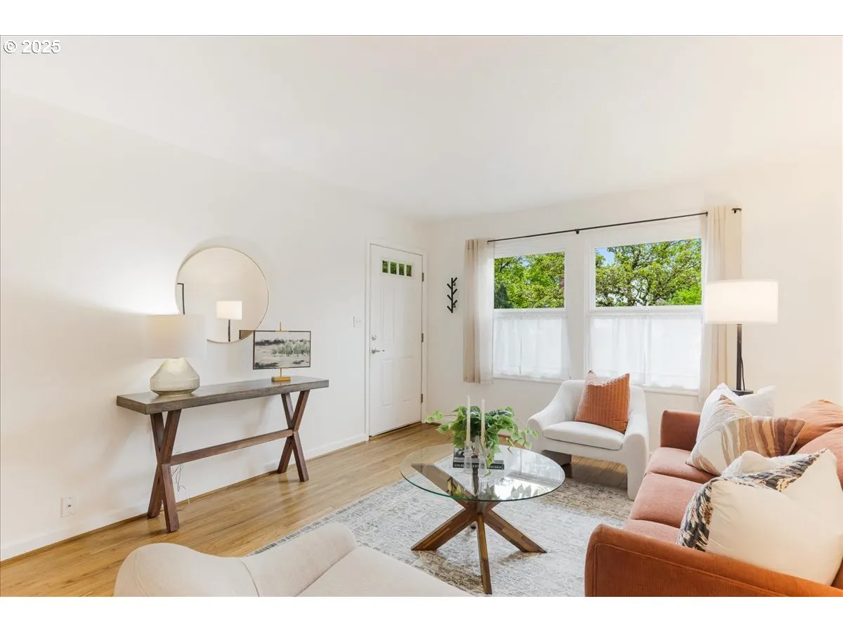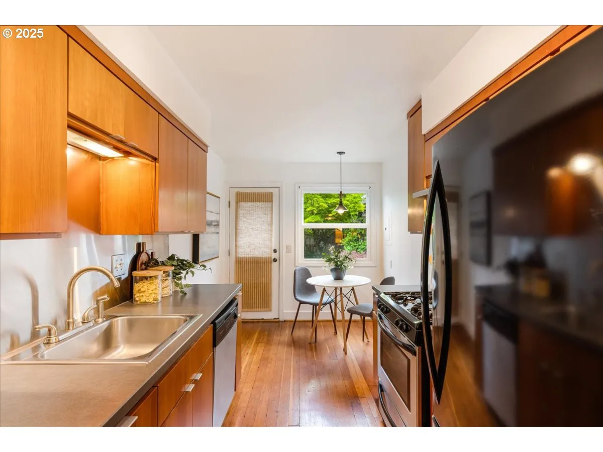 This perfect turn-key condo lives like a little house, situated on a peaceful corner lot, with it’s own front and back entrances, a cozy covered front porch, and a sprawling greenspace out front. In the light and airy interior space, you’ll find a thoughtfully designed layout with wood floors, beautiful green tile shower and stylish finishes that make the space feel chic and inviting. The well-equipped kitchen includes an adorable dining nook and opens to the living area, creating a seamless flow ideal for everyday living or hosting friends. With in-unit laundry, assigned off-street parking, and a large personal storage room, you won’t have a care in the world! The location could not be more ideal, nestled on a quiet side street moments from the heart of city life. A few blocks in one direction you will find yourself in the vibrant Alberta Arts District, with so many wonderful restaurants, coffee shops, galleries, and events spaces. A few blocks in the other direction you will find yourself at stunning and peaceful Alberta Park and a great stretch of NE Killingsworth, with even more lovely spots to dine. This one has it all, combining peaceful, low-maintenance living with the energy, culture, and convenience of city life just outside your door. [Home Energy Score = 8. HES Report at https://rpt.greenbuildingregistry.com/hes/OR10194535]