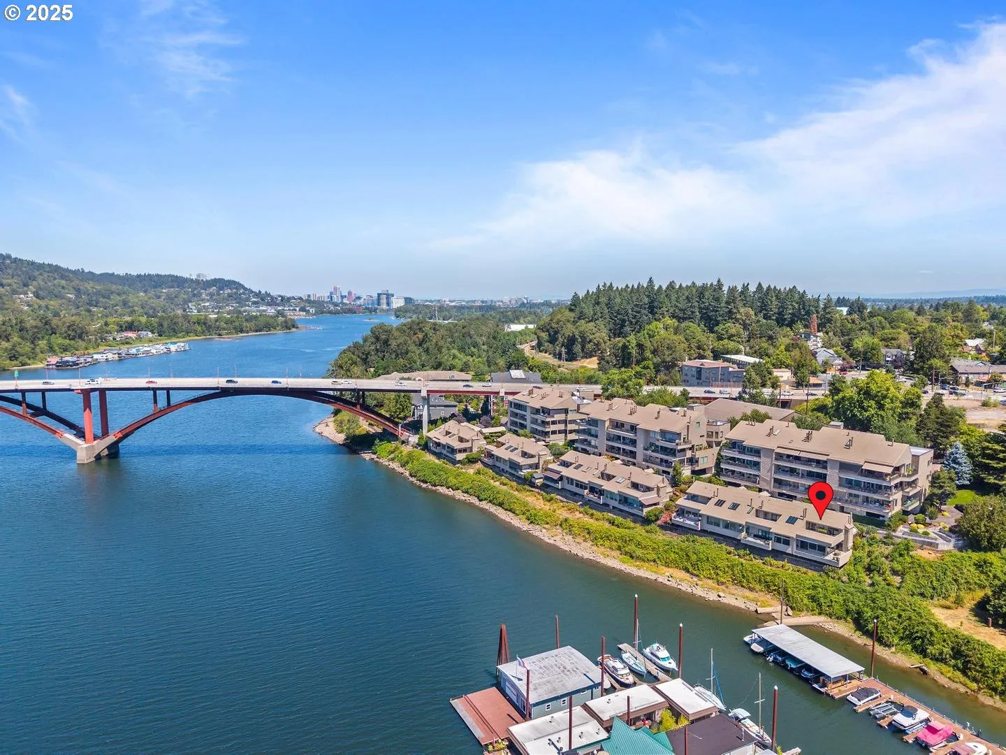 Live on the Willamette River in the heart of Sellwood! This true end-unit townhome-style condo offers stunning views of the river, marina, the Willamette River’s forested West bank, & gorgeous green space & trees to its south from two expansive private decks totaling nearly 800 sqft of outdoor living. The main level features a large kitchen, dining & living room, & a spacious primary suite with a private bath, deck access, fireplace, walk-in closet, & its own laundry. Upstairs you’ll find the second bedroom with an attached bathroom, a family room, half bath, 2nd laundry area, & access to the second deck. The home features 3 gas fireplaces, zoned heating & cooling — mini-splits upstairs & central air on the main, high/vaulted ceilings, & abundant natural light. Located at the quiet South end of the community, this unit enjoys extra privacy. The immaculately maintained Sellwood Harbor community offers resort-style amenities: an outdoor pool, tennis, pickleball & basketball courts, gym, community room with kitchen, plus bike & kayak storage. Just blocks to New Seasons, shops, cafes, Sellwood Park & Sellwood Riverfront Park, the Sellwood Bridge, & the Springwater Corridor Trail. Includes two covered parking spots & large storage unit. Highly rated schools. Riverfront & resort-style living doesn’t get better than this!