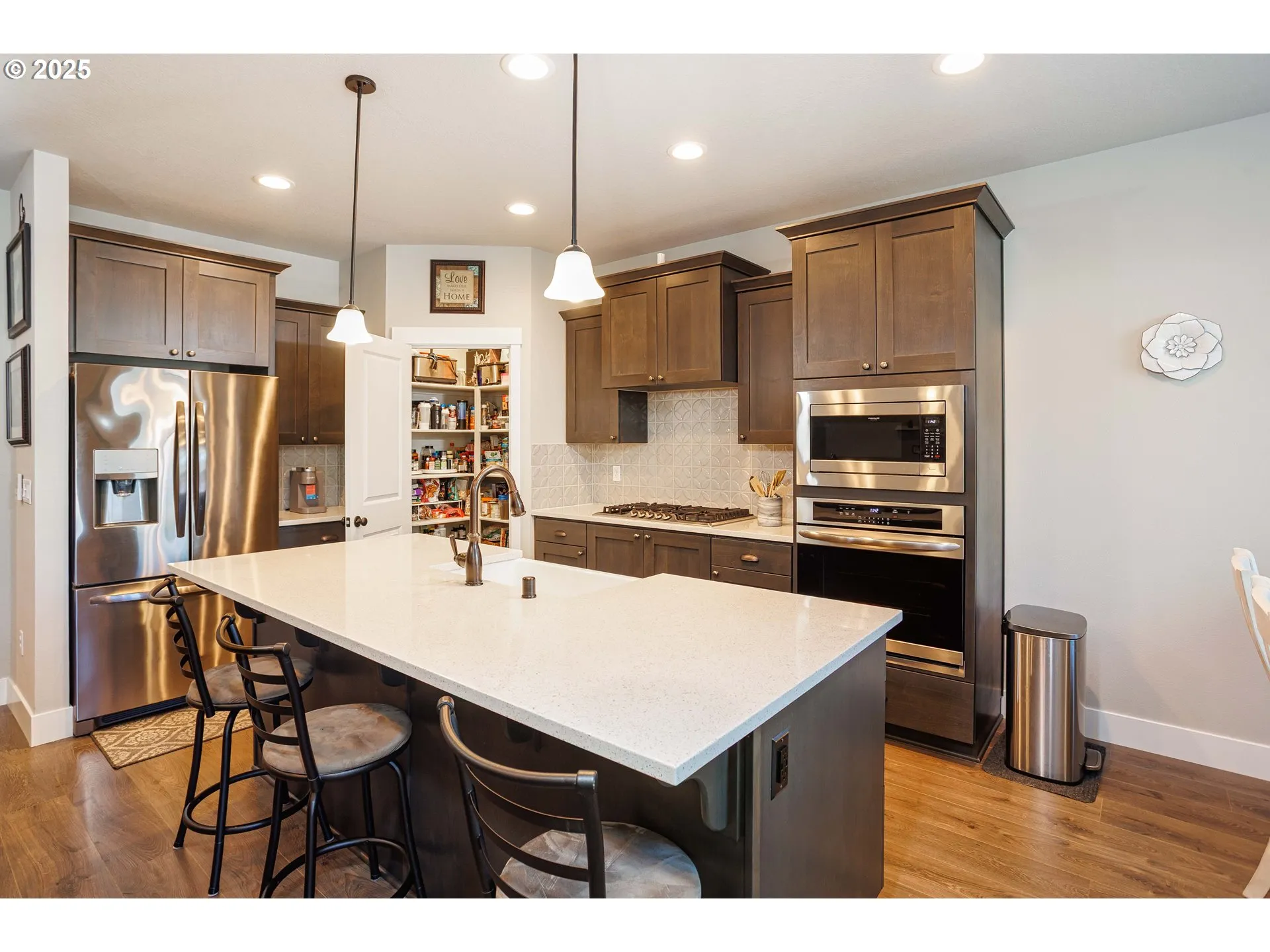 Open house Sunday 11:00-2:00. This one checks every box. Newer one level, on a cul-de-sac with a 3-car garage and across from a greenbelt. Lots of upgrades in this 2020 build. Kitchen has custom backsplash, pantry, gas range, quartz, SS, island with country sink and soft close drawers. Expanded outdoor living space has room to entertain and a small, covered area with gas BBQ hookup. Mostly private backyard. Primary has alcove ceilings, double sinks, walk-in closet, separate tub and shower plus door to the patio. Guest bedroom is 2 steps from a full bathroom. Large garden spot with great sun.