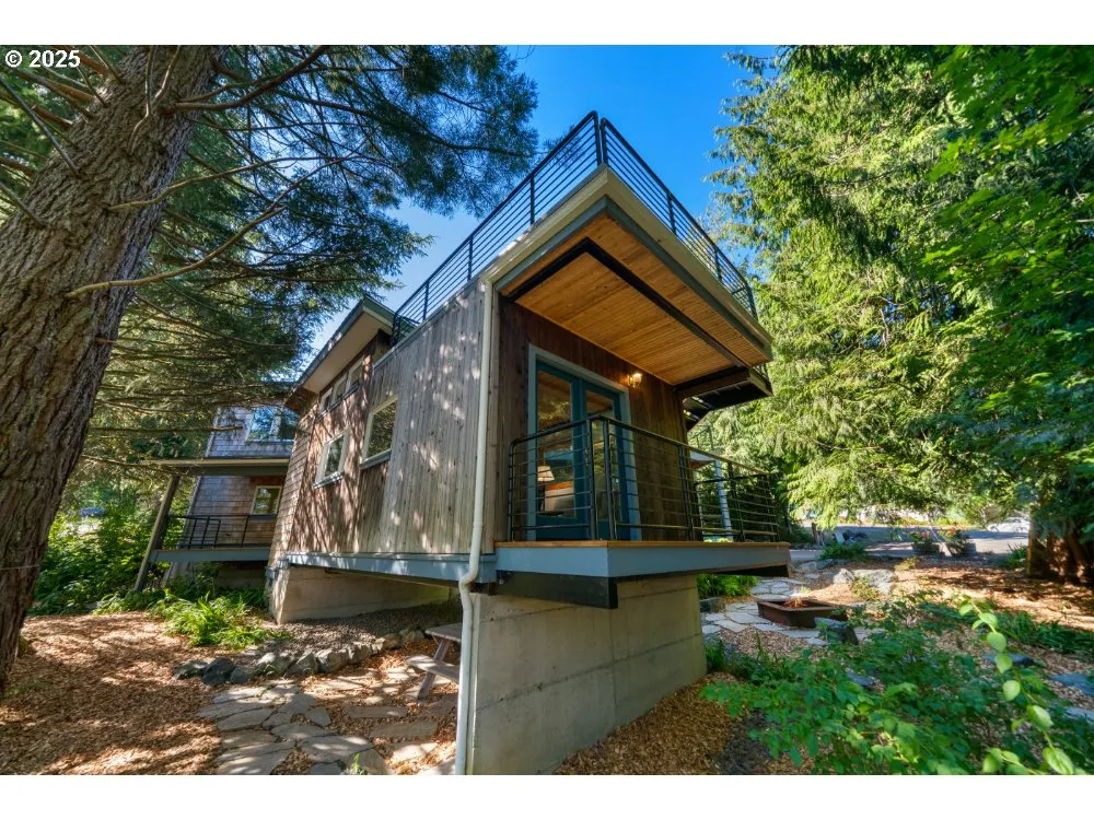 This home is an incredible example of “Architecture as ART”. Nestled in the trees; this amazing & truly unique home was designed and built by the Seller for their own use. Seller is an experienced and talented contractor. Utilizing a MOD container unit along w/ stick-built home construction.Beautiful landscaping and grounds, creating a most wonderful park like getaway bordered by trees. Inside home actually feels like you are living in the trees, amazing light-filled interior! Stylish decks surround the home as well as a rooftop deck. Fire pit area, built in rear bench lounging area. 2nd Floor bedrooms, one large next to upper library/family room & 2nd bedroom. Ground floor features open concept living, 3rd bedroom, bath with steam shower & stacker washer/dryer. Attached single car garage, extra storage & driveway parking. Under home covered outdoor dining & relaxing area. Ease walk to town to Post Office, restaurants, retail & Tillamook Bay. Seller secured Bay City Short Term Rental (STR) permit, check with the City to apply.