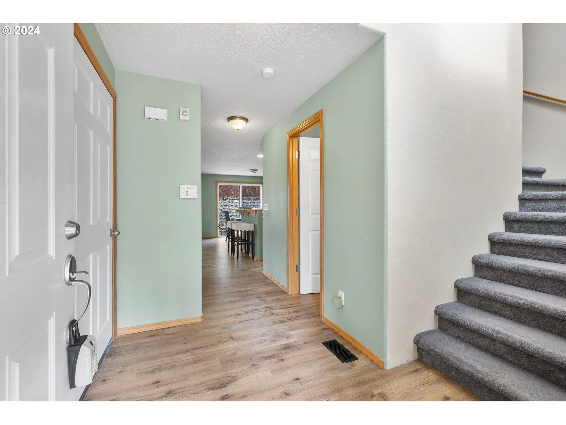 Welcome to this wonderful 3-bedroom, 2.5-bath home offering comfort, style, and convenience. As you step inside, you’ll immediately notice the new flooring throughout the first floor, enhancing the spacious open floor plan. The living room features a cozy fireplace, perfect for unwinding, while the adjacent dining area and breakfast bar in the kitchen make hosting and entertaining a breeze.A sliding door leads to a private outdoor patio area, complete with a firepit, perfect for gatherings or quiet evenings. The fully fenced backyard provides both privacy and security for pets and play. Upstairs, you’ll find three comfortable bedrooms, including a primary suite with its own bathroom for added privacy, along with a conveniently located laundry room.Situated across the street from a neighborhood park featuring a basketball court and moments away from Tickle Creek Trail, this home is ideal for outdoor enthusiasts. With easy access to the highway, commuting is a breeze.This home blends convenience with tranquility—schedule your private showing today!