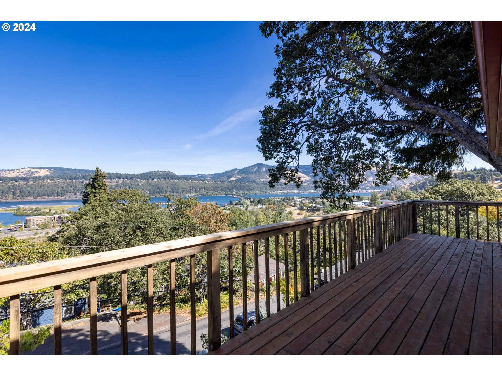 Nestled atop a scenic hill, this delightful 3-bedroom, 2-bath home offers a blend of charm, comfort, and breathtaking views. Just a few blocks from downtown, the home boasts a highly coveted location, perfect for a primary residence or as a lucrative rental property. Flooded with natural light, the open floor plan connects the kitchen to spacious living area. The expansive deck invites you to relax and enjoy the serene surroundings, and a second story balcony offers stunning vistas of the Columbia River valley. The terraced garden, dotted with mature trees and vibrant plants, creates a peaceful outdoor retreat. With some thoughtful investment, the two-car garage holds potential for conversion into a separate apartment, offering additional rental income or guest accommodations. The home also boasts a roof replaced only 2 years ago, a high efficiency hydronic heating system, and a recently replaced gas stove. This property is a rare find, offering a blend of privacy, convenience, and unparalleled views, all within walking distance of the vibrant heart of downtown. Don’t miss the opportunity to make this versatile home yours!