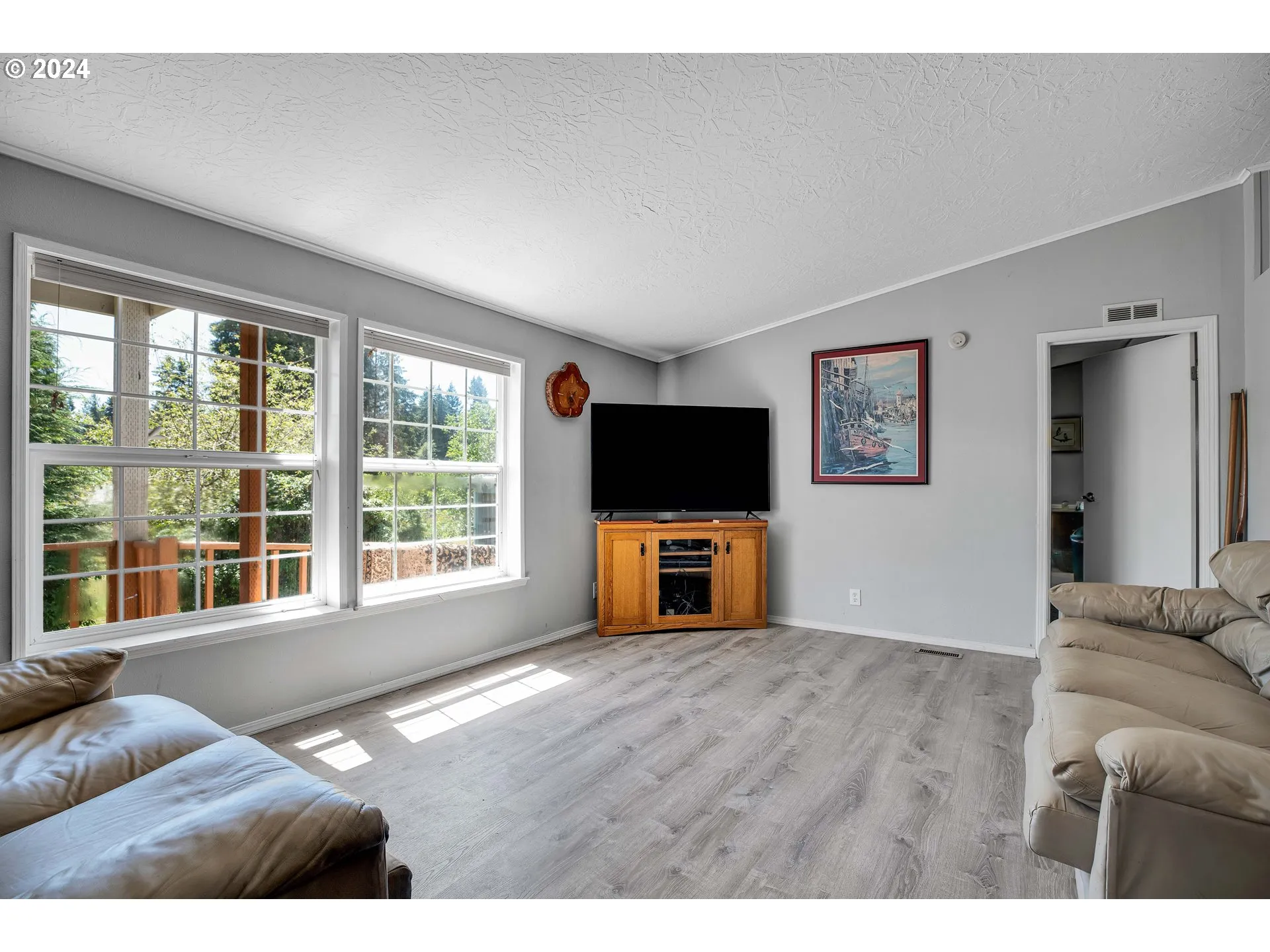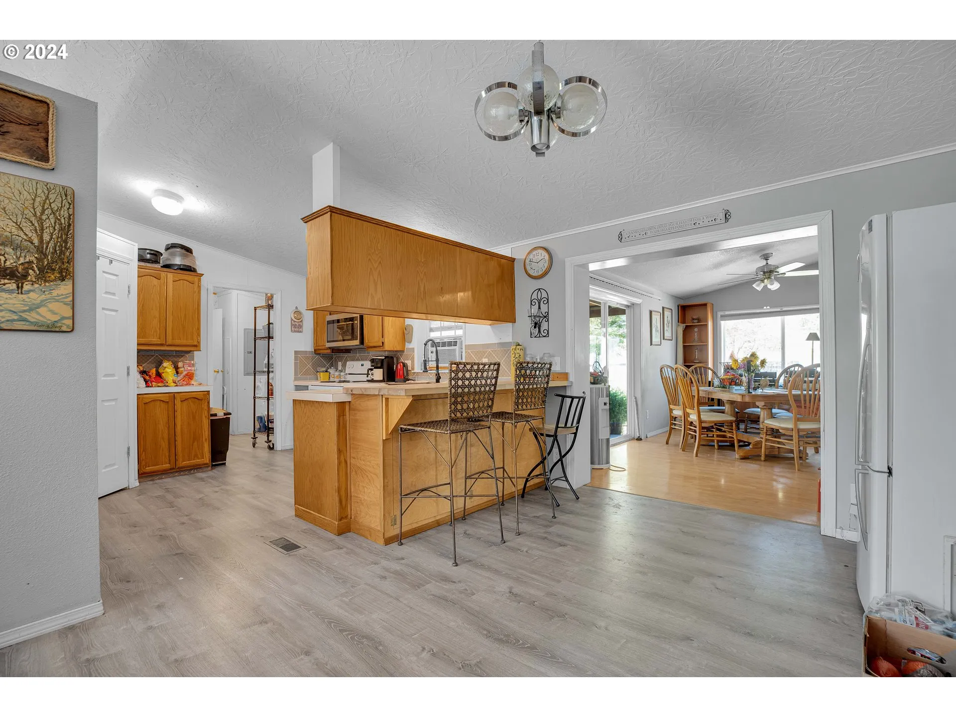 Welcome to this inviting 3-bedroom, 2-bathroom home offering 2,132 sq ft of comfortable living space, complete with a shop, & detached 2-car garage situated on .82 acre. This home is abundant with natural light accentuating new LVP flooring throughout the main living areas and new carpeting in bedrooms. The vaulted ceiling living room is airy and bright, featuring a large window that fills the space with sunlight. The kitchen boasts ample cabinet storage, a pantry, breakfast nook & bar, making it a chef’s delight & perfect for entertaining! Flowing seamlessly from the kitchen is a formal dining room with a sliding door providing easy access to the expansive backyard. The primary bedroom suite includes a spacious walk-in closet and an ensuite bathroom with double sinks and with walk-in low-step shower, ensuring comfort and convenience. For added practicality, the ensuite bathroom flows into the laundry room, making chores effortless. Two additional generously sized bedrooms also feature large walk-in closets, offering plenty of storage space for organization. Outside, the backyard beckons with its tranquil ambiance, complete with a deck, perfect for relaxing or entertaining guests in a serene setting. Additionally, the 35X35 shop offers plenty of room for RV parking, hobbies, vehicles, and storage, catering to all your needs. This home is tied down & can be financed with traditional loan programs. Don’t miss the opportunity to make this charming property your new home.
