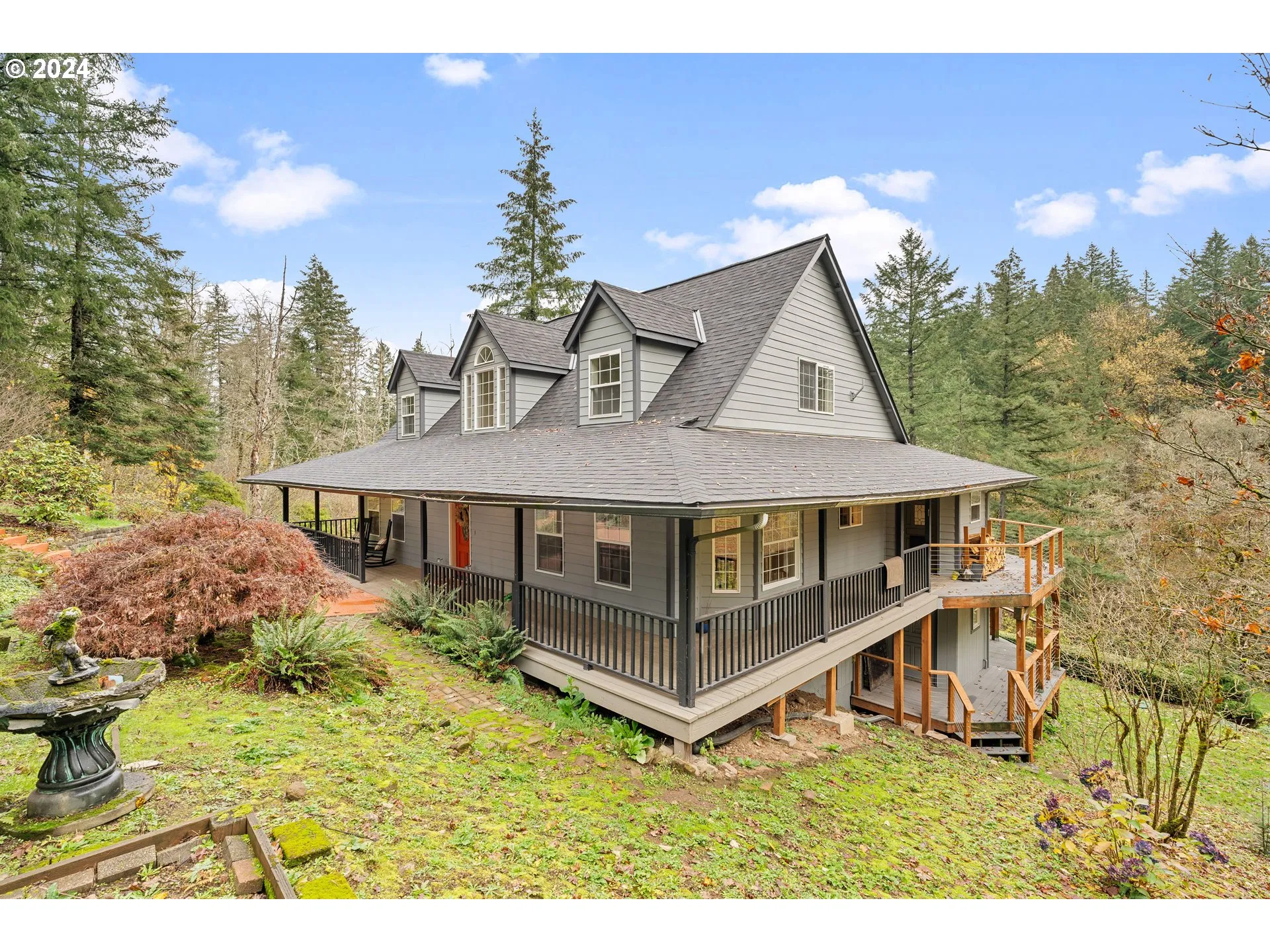 This riverfront custom home on 2.61 acres offers 350 feet of Rock Creek frontage, Breathtaking Views, and a perfect setting for Entertaining. The 4-bedroom, 3.5-bath home features a Main-Floor Primary Suite with a Spa-like Bath, heated floors, and a Clawfoot tub overlooking the forest. The spacious lower level offers Multigenerational Living Potential or rental income. The detached garage includes a 3-car bay with an oversized loft for extra storage or potential living space. This home combines luxury, comfort, and scenic beauty in a peaceful setting with granite tile countertops, vaulted ceilings, exposed beams, skylights, and a new roof replaced in 2022