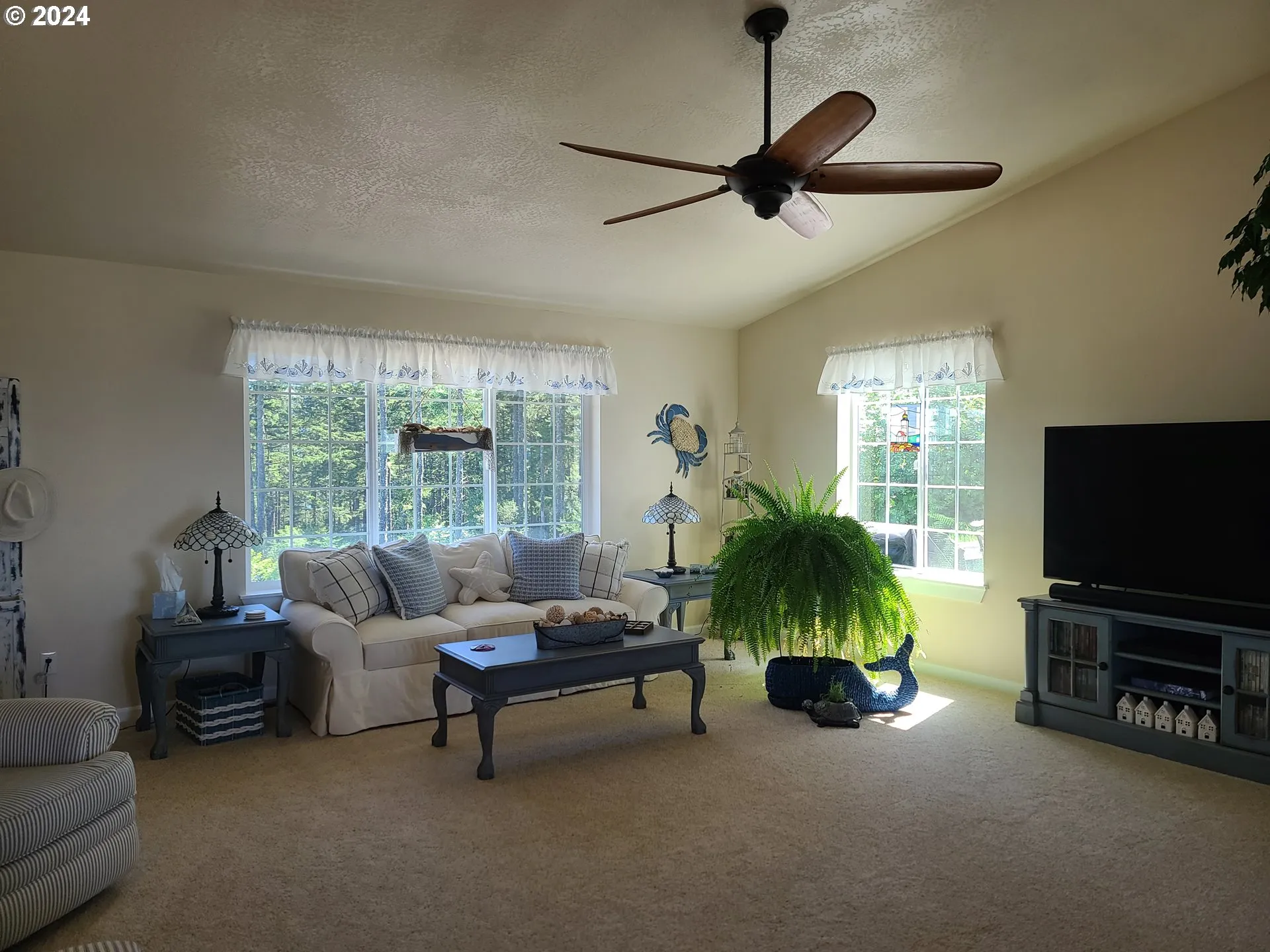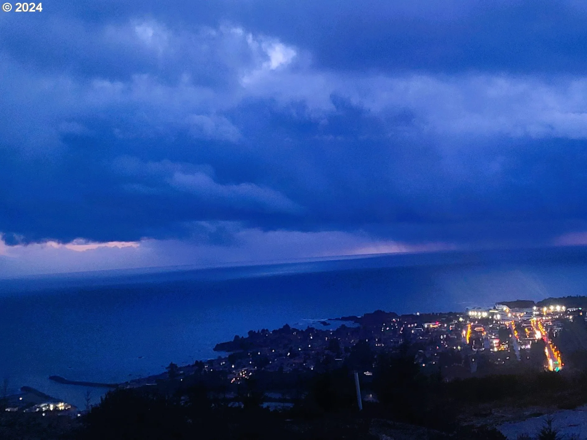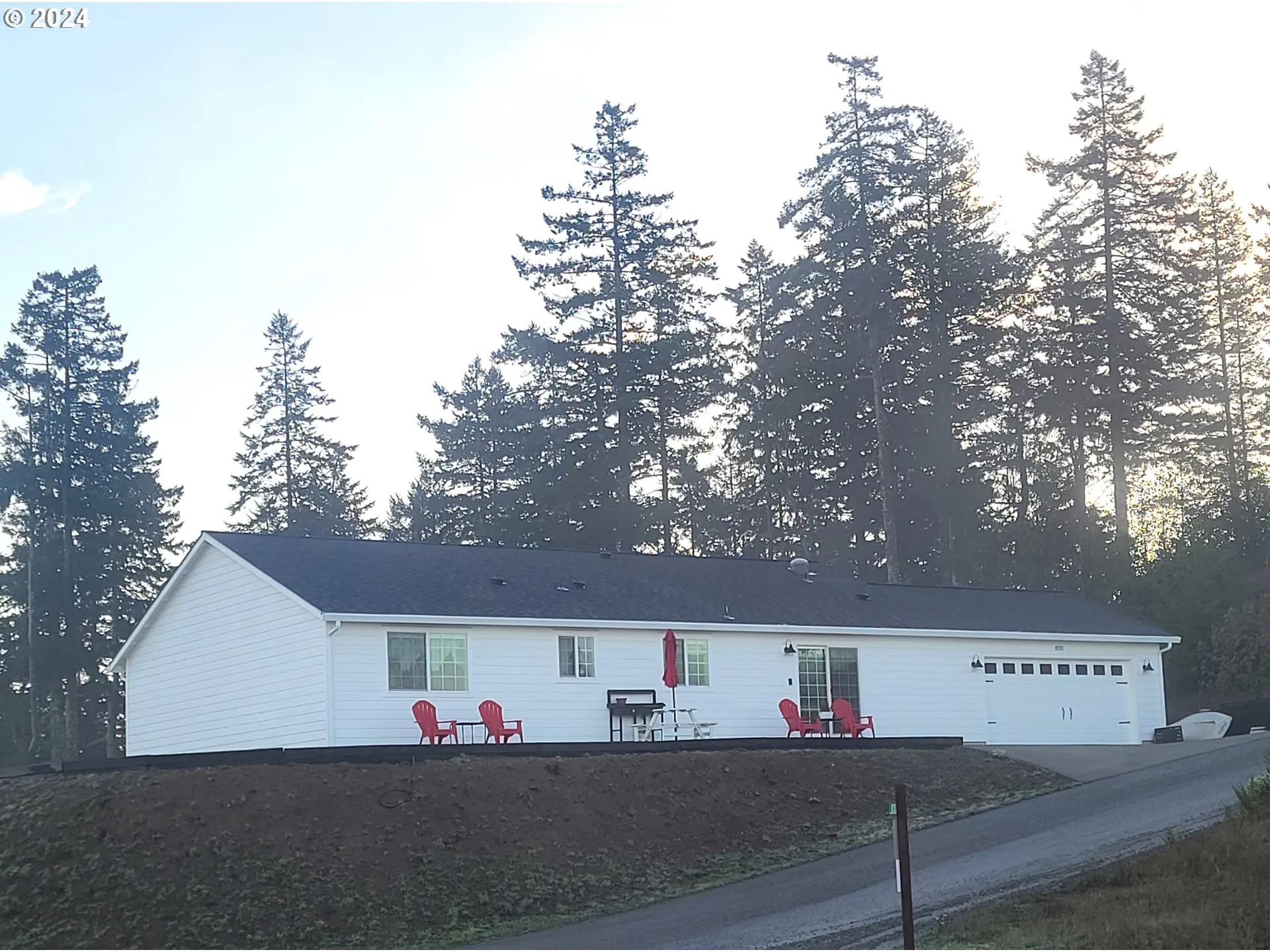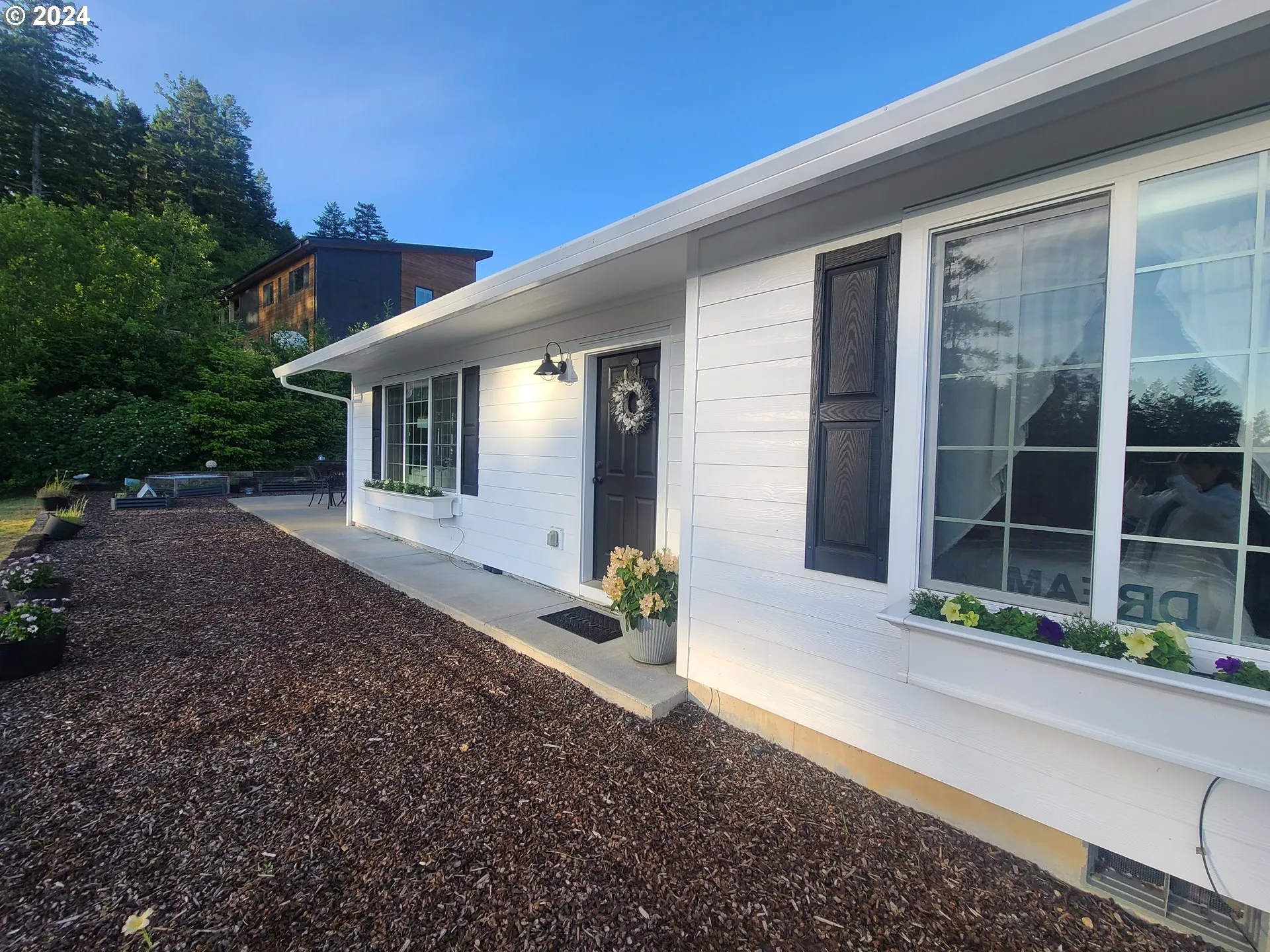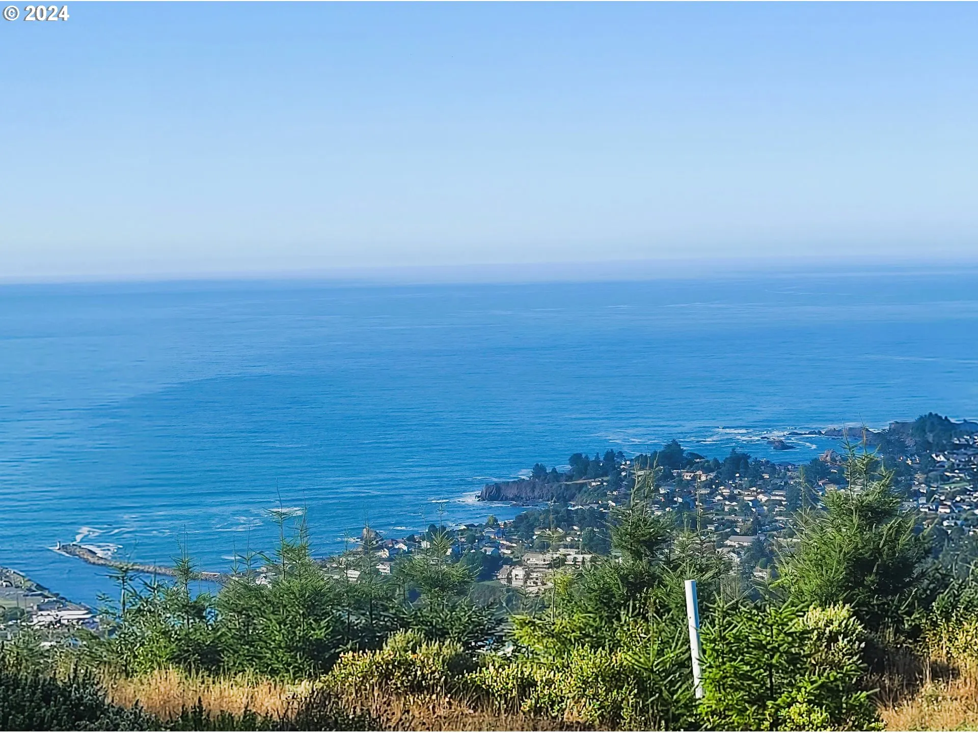 Enjoy amazing views in all directions from this newer 3-bedroom, 2-bath, one-story home located at the top of Crown Terrace. Two patios allow you to make the most of the views. In the morning, watch the sun come up through the forest from the east patio. At the end of day, take in the sunset over the harbor entrance and ocean from the west patio, then watch as the city lights begin to come on in town! Open concept living with a large great room, dining room and kitchen all with vaulted ceilings. The kitchen has cherry cabinets with upgraded appliances, including a GE Profile induction range and Café refrigerator. The primary bedroom features a private bath with a jetted tub and walk-in closet with drawer units. All bedrooms have closet organizers and ceiling fans. The home has a Ring alarm system and doorbells. The seller is a licensed Oregon real estate broker.