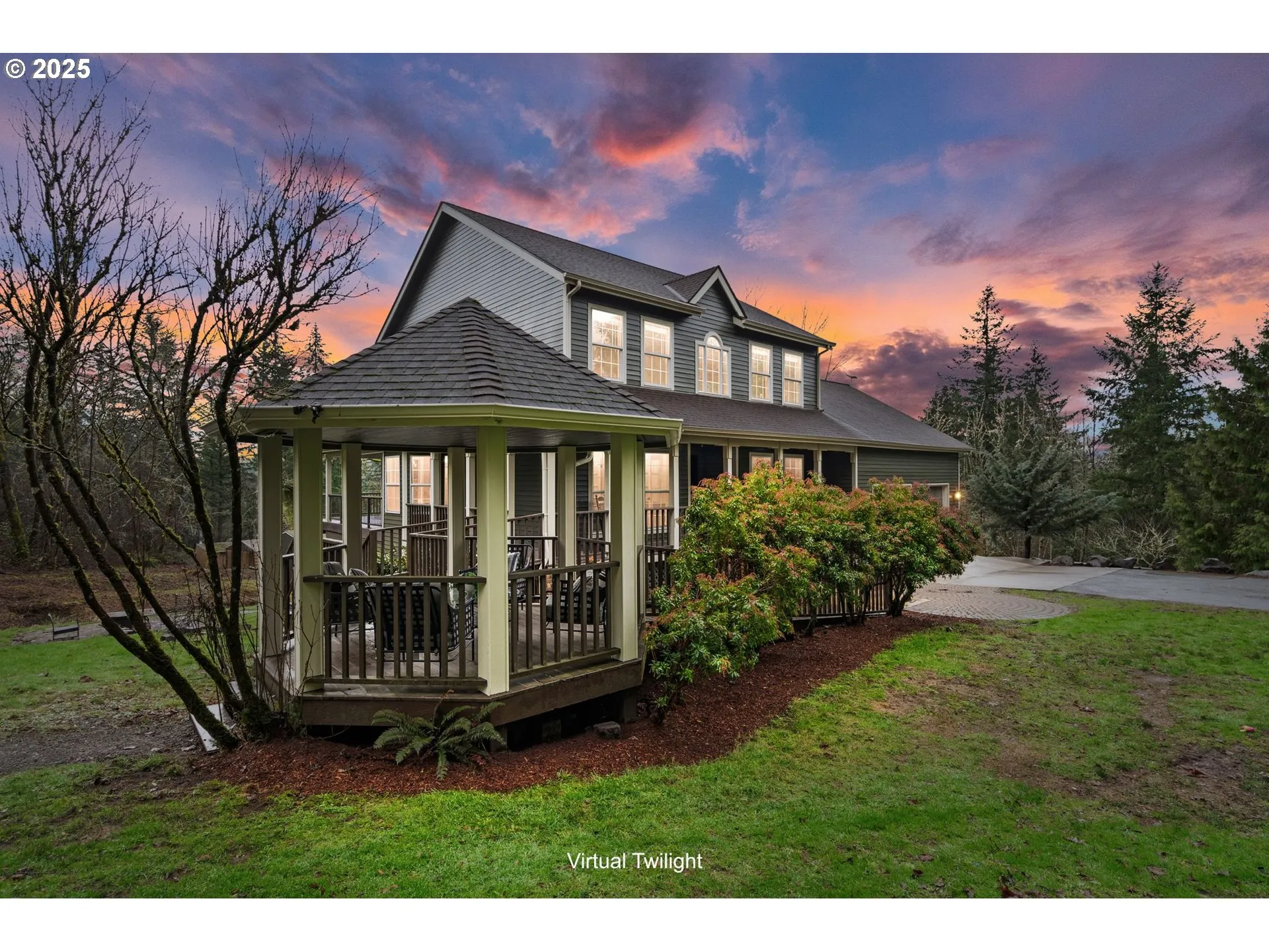 Just 4.9 miles from downtown Battle Ground and 2.1 miles from Battle Ground Lake, this serene 5-acre retreat offers the perfect blend of space, privacy, and freedom. Nestled on a quiet private road, it’s the kind of setting where kids roam safely, neighbors wave hello, and every window frames nature’s beauty.Designed for flexibility, this home features two full living spaces—ideal for multi-gen living, rental income, or guests. With 4 bedrooms (plus a possible 5th), 2 offices, formal dining, dual kitchens, and laundry on both levels, there’s room for everyone and everything.Unwind on the wrap-around porch or multiple decks overlooking a seasonal creek, fruit trees (apple, fig, peach), and flourishing blueberry bushes.Car lovers and hobbyists will love the oversized 2-car garage with storage loft, a powered shop with 220V, RV/equipment carport, and a gravel pad with water and electric ready for your next project—whether that’s a pool, outbuilding, or sport court.Whether your dream is a private retreat, hobby farm, or income property, this versatile estate delivers country living just minutes from town, trails, and the lake.