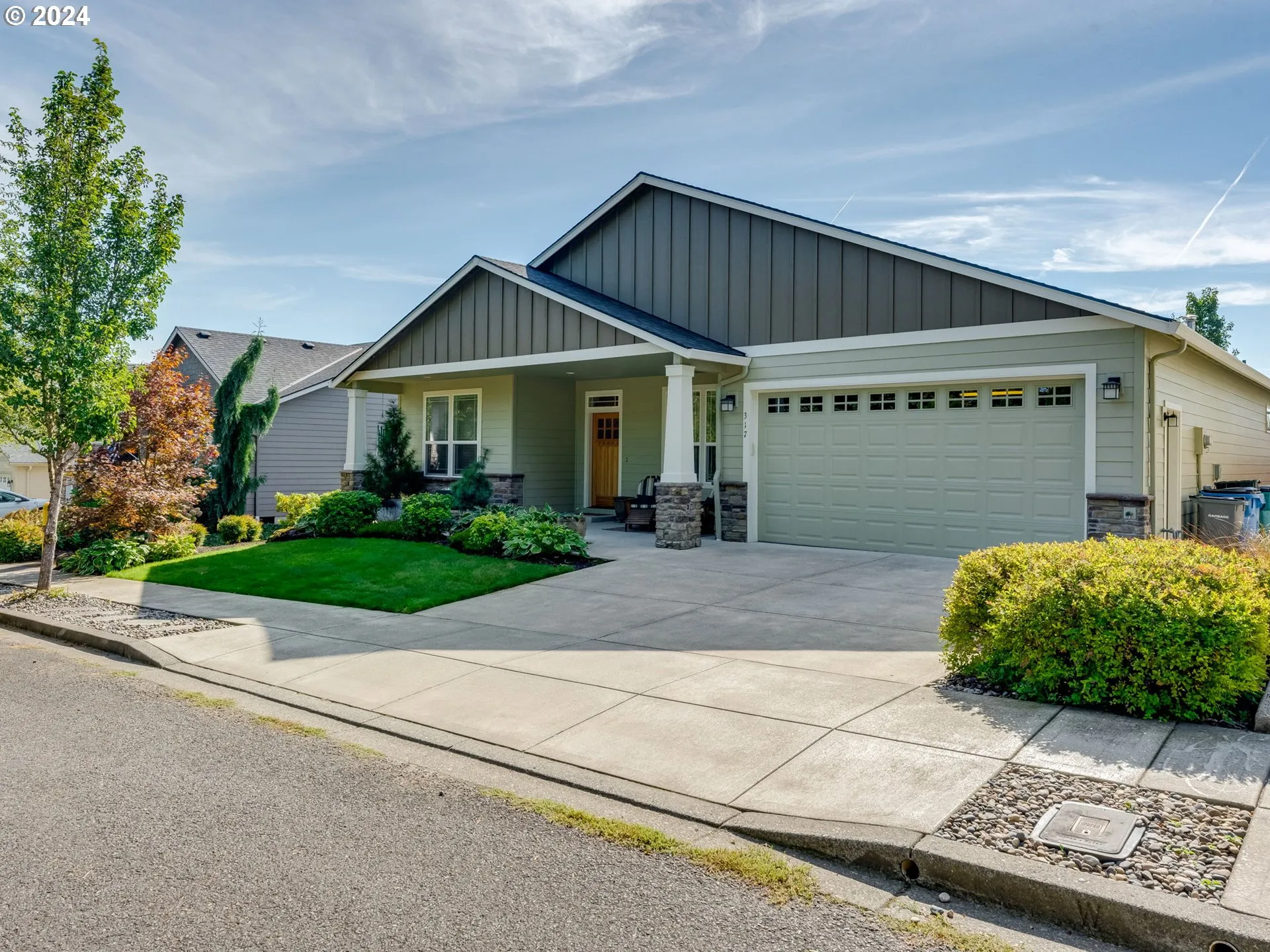 Stunning single story home with exceptional features and floor plan! Enjoy high ceilings and an inviting open layout, featuring a vaulted great room with a cozy stone fireplace, custom built-ins and exclusive dining space. The home showcases stylish decor laminate floors and elegant two-way blinds. The gourmet kitchen is a chef’s dream with a grand island with bar seating & extra storage, gorgeous granite countertops, stainless steel appliances, induction cooktop, soft-close drawers, 2 spice rack pull-outs, and a generous 12×5 walk-in pantry offering ample storage. The mud/utility room is equipped with a convenient hanging bar, while the versatile den/office/3rd bedroom includes a closet for added functionality. The luxurious master suite boasts a spacious walk-in closet and a beautifully tiled shower. Build in vaccuum in the home and garage. Enjoy outdoor living on the expanded covered patio with lighting and a ceiling fan, overlooking a fully fenced yard, fairy garden and a storage shed. Exterior of home painted in 2024. This home truly has it all!