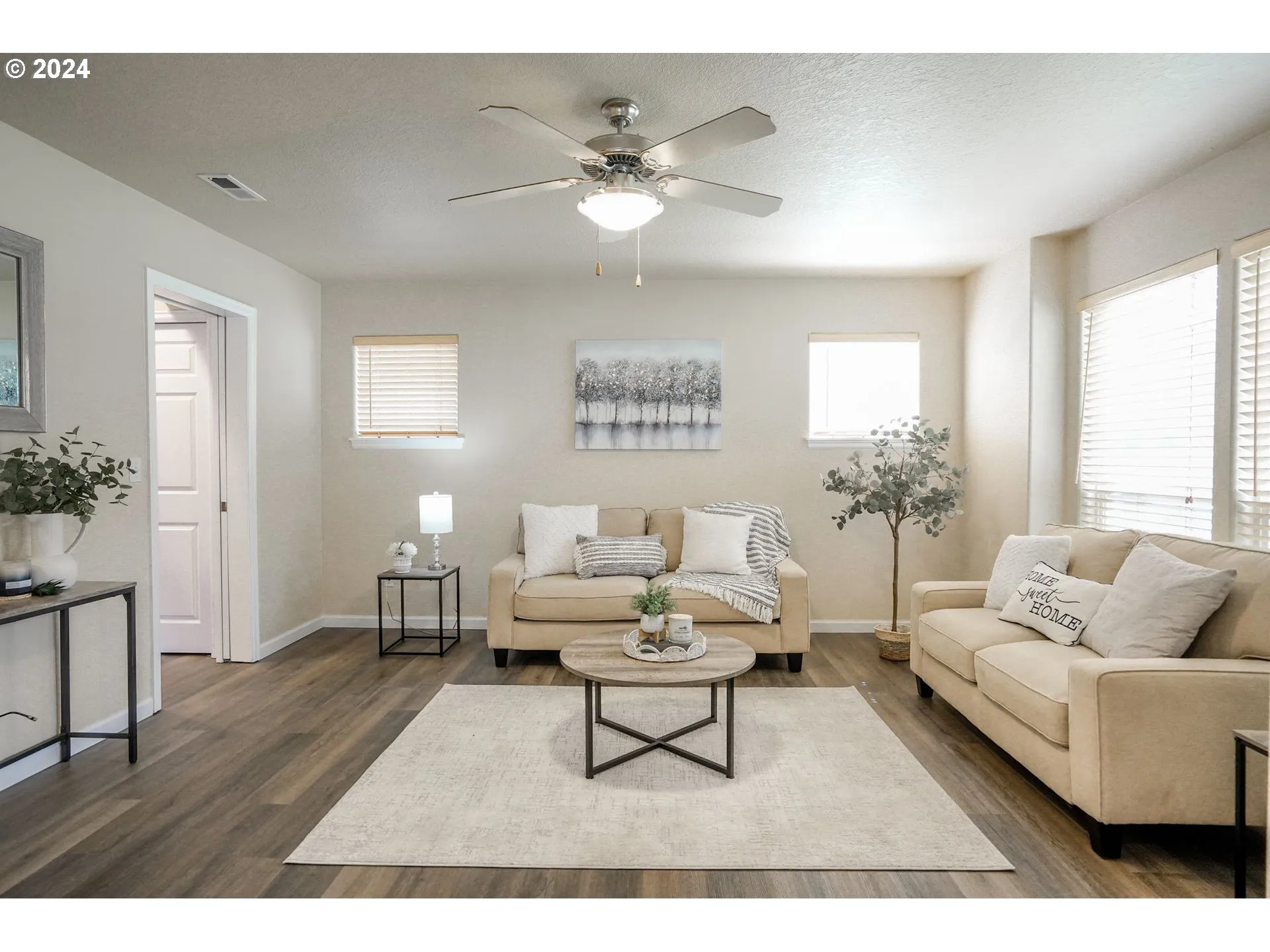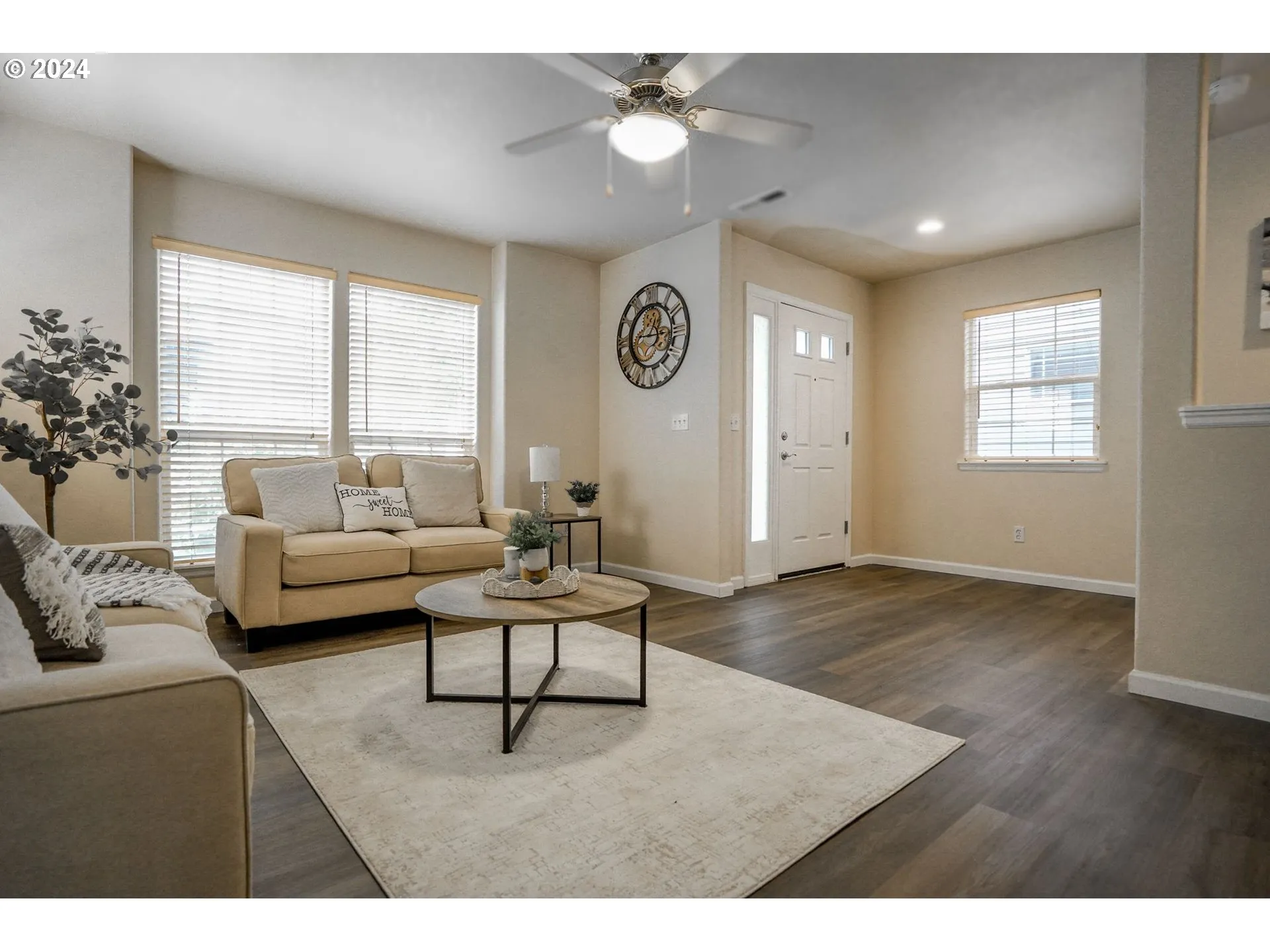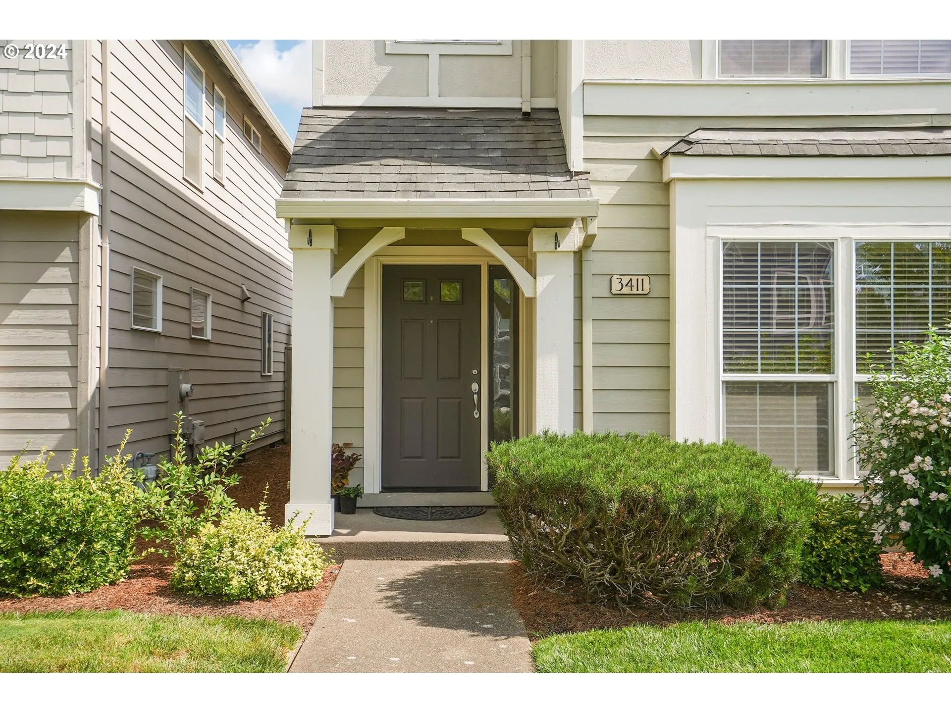 Adorable little home in Willamette Landing. New flooring throughout home. HOA covers front yard landscaping,yearly backflow testing, access to club house, swimming pool and gym. Back yard has deck and mature landscaping. Walk-in closets in both bedrms, ceiling fans, lg. storage closet under stairs & linen closet. Slider to patio & easy care yard. Perfect for students.