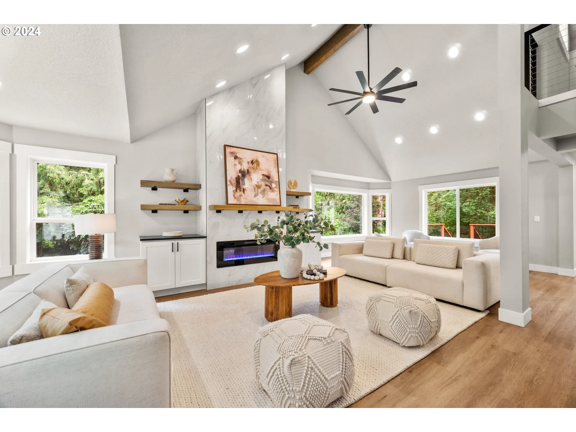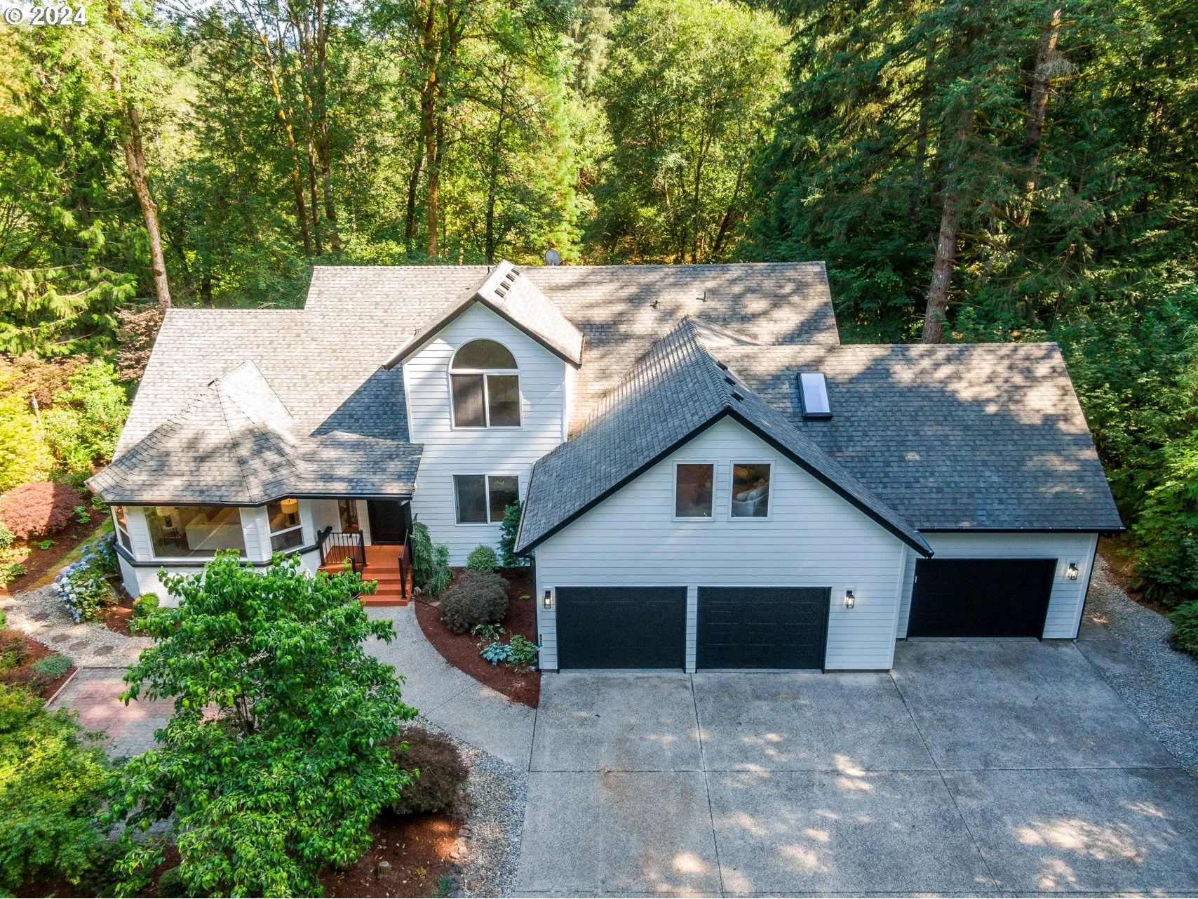 Nestled on 2.5 pristine acres along the tranquil banks of the Salmon Creek, this completely remodeled residence offers unparalleled luxury and serenity. This home has been beautifully redesigned to blend modern elegance with comfort. The open-concept design is illuminated by abundant natural light, highlighting the exquisite craftsmanship. Everything in this home is new including the electrical, plumbing, and a dual hvac system. Featuring top-of-the-line finishes like custom cabinetry, vaulted ceilings with exposed wood beams, and custom floating stairs. The kitchen is meticulously remodeled, with a large quartz waterfall island, large pantry, and stylish finishes, making any cooking experience a delight. The grand living room/great room features a custom floor-to-ceiling porcelain fireplace and windows overlooking the serene creek and lush landscape. The home boasts four large bedrooms. The fourth bonus area could be utilized and converted to 4th bedroom with storage/closet space. The primary suite offers a luxurious bathroom, including a soaking tub, a walk-in mud set shower, dual vanities, and a walk-in closet. Walk outside the primary bedroom to discover your own quiet, scenic, oasis. Outdoor park-like landscaping throughout the property, not to mention your very own creekfront. The property offers ample room and plenty of parking, including a 3-car garage with an epoxy finish, a carport, and a detached garage. This is a one-of-a-kind property that won’t disappoint. Come tour this home today!