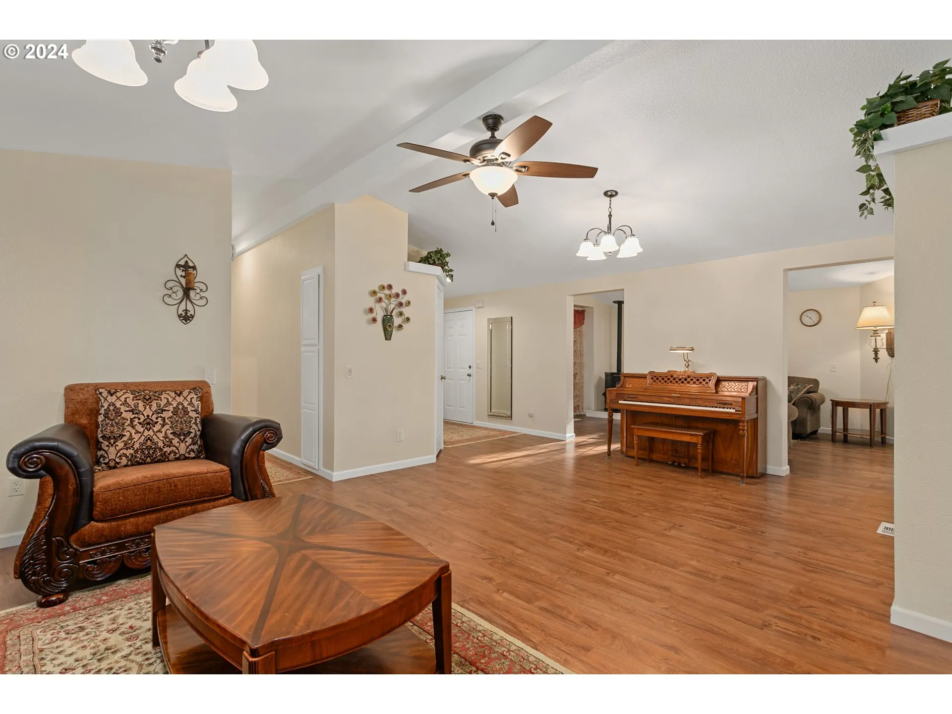 Escape to a Serene Oasis! Nestled on gorgeous park-like grounds, this triple-wide manufactured home offers the ultimate retreat with winding trails, fruit trees, berry bushes, and a fenced-in garden. Already built chicken coop, utility shed, plus a small animal livestock structure. The property’s privacy is unmatched, creating the perfect blend of natural beauty and peaceful living. A spacious 4-bay shop/garage with an additional room provides ample space for projects, hobbies, or storage. Inside, this immaculately updated and remodeled home exudes charm and comfort. The country-style kitchen features a deep farmhouse sink, new stainless steel appliances, tons of storage, and direct access to the yard. You’ll love the cozy eating space, perfect for enjoying a morning coffee while taking in the tranquil views. Home has been updated with luxury vinyl plank flooring throughout. The home boasts three bedrooms, two full baths, and multiple living spaces, including a living room and family room, both with fireplaces to keep you warm and cozy during cooler seasons. Step outside to enjoy the surrounding acreage with hundreds of beautiful plants, shrubs, and bulbs that bloom throughout the seasons. Located just minutes from Daybreak Park, this property offers the perfect combination of seclusion and community, making it an idyllic place to call home.
