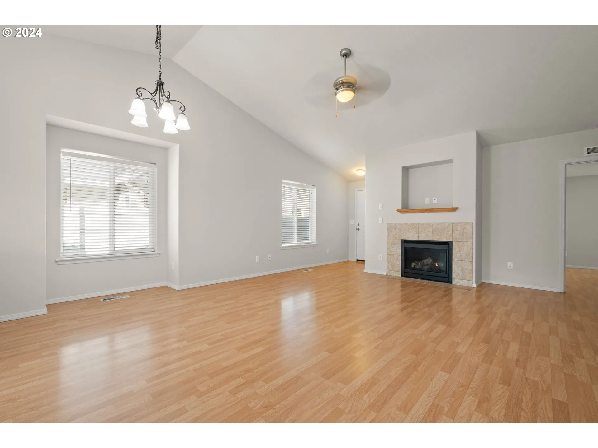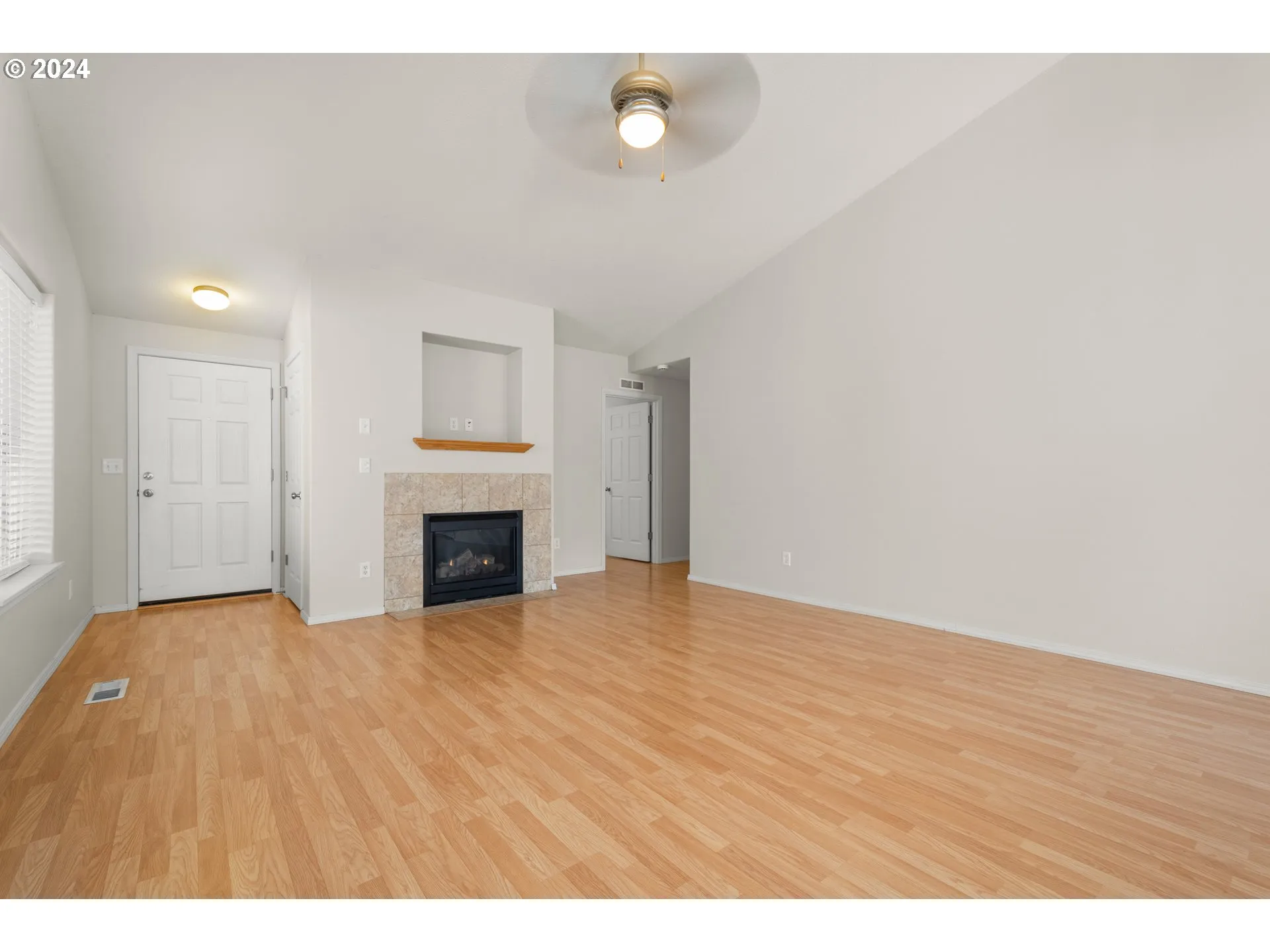 This darling, sparkling clean 2 bedroom/2 bath ranch is full of natural light and green space views. Its vaulted living room/dining area flow seamlessly together from the kitchen creating an ideal open space. The primary ensuite features flex space, walk-in closet and step-in shower, while the second bedroom, full bath and laundry closet complete its delightful floor plan. Relax on the covered back porch or garden in the peaceful, fenced back yard. Just minutes away from local shops, services, parks, library and restaurants, this home is move in ready with all appliances, including refrigerator, washer and dryer. HOA maintains front and back yards. Cute as a button!