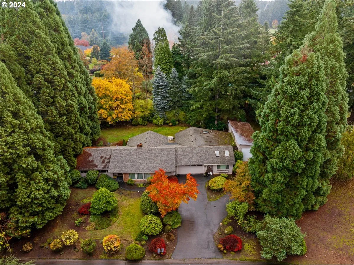 Kelmsley Estates is a beautiful highly-desired community of well-maintained homes and towering trees, park-like setting. This spacious ranch-style home sits on .86 acres with huge majestic trees, corner lot, in a quiet peaceful setting. Open inviting Great-Room with comfortable living area, gas fireplace, eating area, and lovely kitchen. Kitchen has double ovens, gas range, large deluxe refrigerator and pantry; remodeled approx. 10 years ago with hardwood floors, cabinets, granite countertops and appliances. There are TW0 Primary Suites (one added approx. 10 years ago with large walk-in closet, jetted tub, double vanity and skylight). 4th BD used as office. Hall bath was also remodeled with new countertops, finishes and fixtures. Windows have been replaced with double-pane vinyl windows. Newer gas furnace in 2020. There are 3 additional bonus rooms off of the main 2-car attached garage: A 16’ x 22’ studio/office with two skylights, a 16’x21’ storage area, and a 15’x30’ 2nd Garage with an 11’H x 10’W roll-up door. There’s also storage in an upstairs loft area. RV parking with plenty of storage. Stone Creek Golf Course, Clackamas County College, shopping & restaurants close by. Country Living At Its Best!
