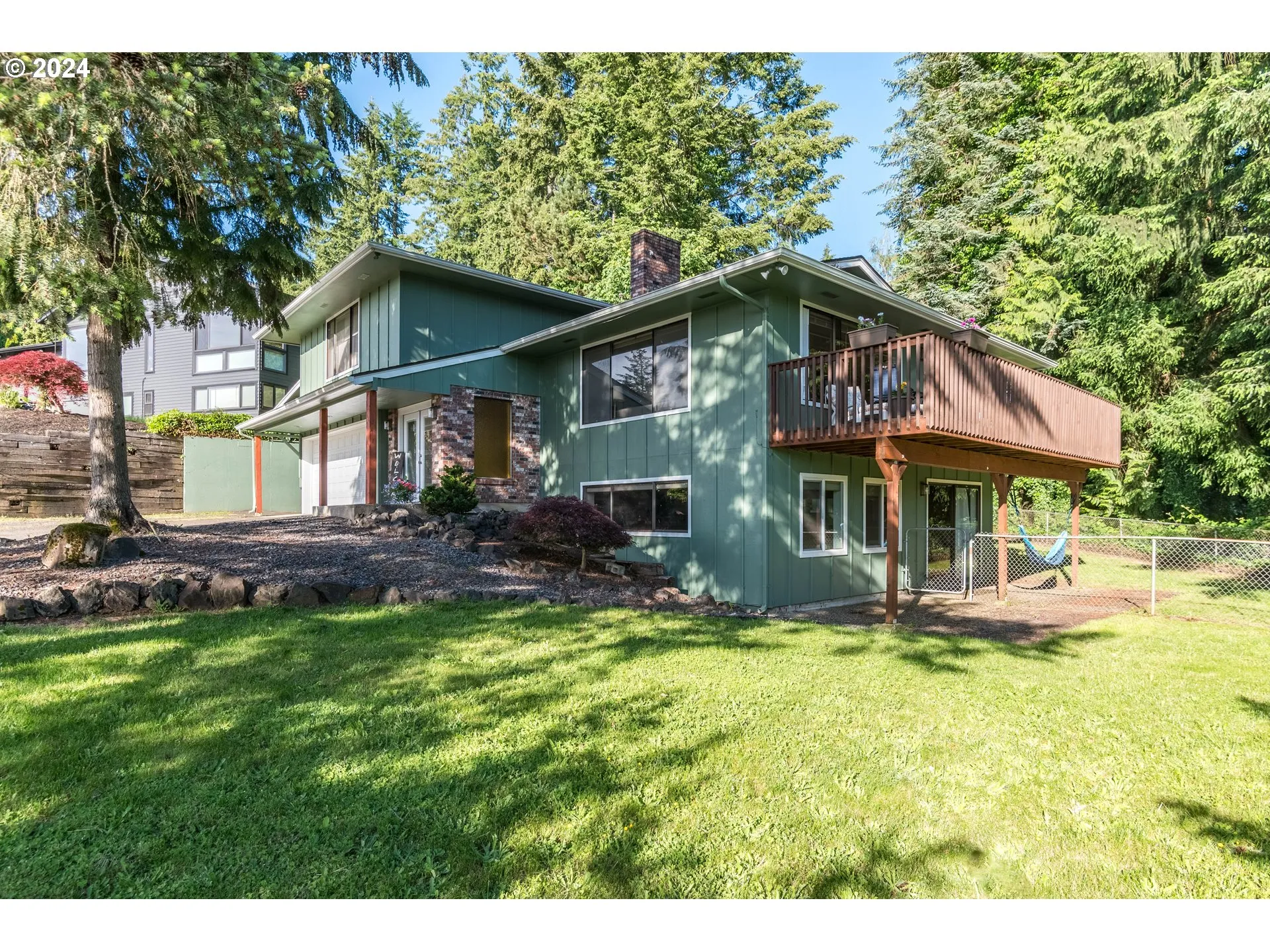 Wonderful multi-level home featuring 4 bedrooms & nearly 2700 sq. ft. Open concept main level with hardwood floors throughout the living room, dining room and kitchen. The remodeled kitchen is the heart of the home with custom cabinets, quartz counters, island & stainless appliances. Fireplace & deck. Upper level with 3 bedrooms including primary bedroom with walk-in closet and attached bathroom with tile shower surround, plus full bathroom. Laundry room with door to fenced back yard with attached bathroom. Downstairs is large family room with fireplace & slider to backyard. Attached 2 car garage & large carport. Detached 1 car garage (being used as gym) plus additional space for home business or studio. Oversized fenced yard & great lot!