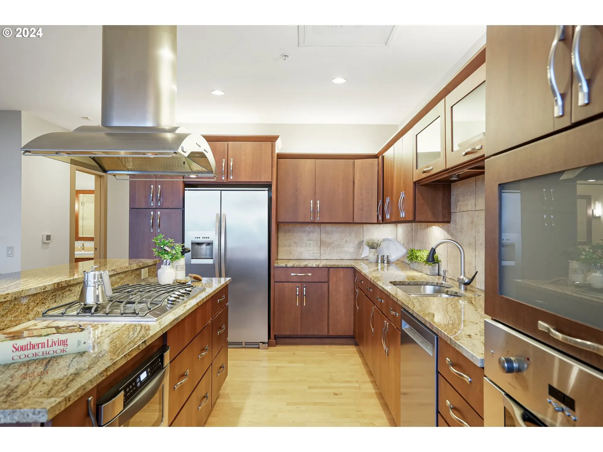 Fully furnished, this move-in-ready condo offers convenience, charm, and incredible accessibility. Walk to the farmers market, the Willamette River, shops, restaurants, and more, all accessibility. Walk to the farmers market, the Willamette River, shops, restaurants, and more, all stylish furnishings, and an open layout that flows effortlessly to the patio. Includes two dedicated parking spots in the garage and a secure storage unit. Den furnished and used as 2nd bedroom.