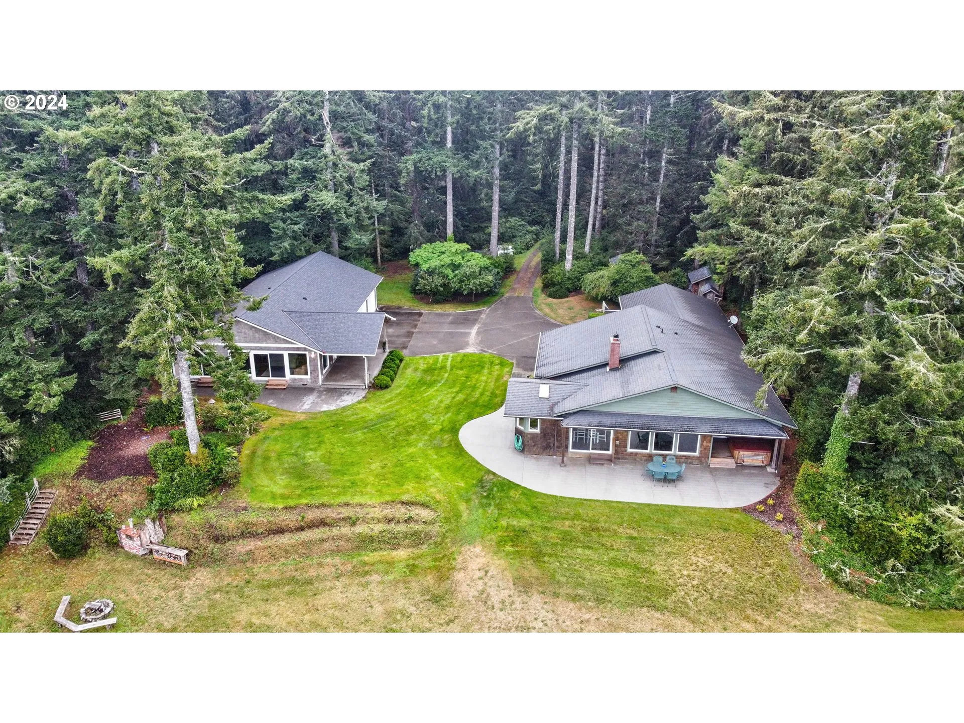 Stop the waiting & settle into the serenity of Willapa Bay with this exceptional 2.78-acre multigenerational estate featuring 184 feet of bay frontage. The 2,140 sq ft main home offers sweeping water views, large windows, an open-concept layout, wood-burning fireplace, and a modern kitchen with quartz countertops, stainless steel appliances, eating bar, wine rack, and mini fridge. Includes 3 beds, 2.5 baths, and a luxurious primary suite with private hot tub access. The attached 2-car garage features epoxy floors and is plumbed. A second 1,584 sq ft structure offers a 3-car garage/shop with oversized doors and a fully equipped 1-bed, 1-bath ADU with bay views, great room, kitchen, and covered porch. Enjoy the wood-burning sauna and explore all the extras this stunning property has to offer. Ideal for multigenerational living, vacation rental potential, or a private coastal retreat!