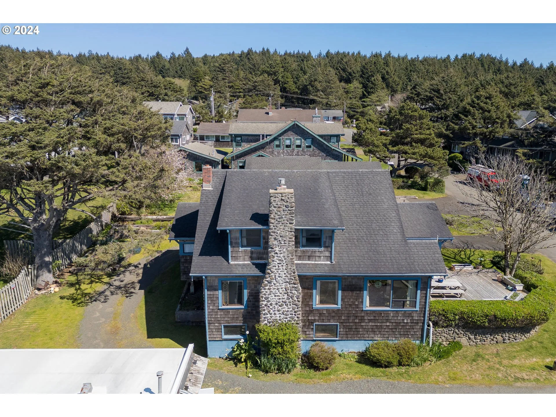 A Rare Cannon Beach Vintage Cottage is resting on part of the Warren Donation Land Claim prpty. Step inside & be magically transported to the 1920’s. The large livingrm has beamed ceilings w/ CROSSETT WAUNA, ORE stamped across each beam.Famous for his stonework, Paul Bartel’s beach rock fireplace is centered between 2 large west facing ocean view windows. Copper port holes said to be from the Peter Iredale greet you. There is a primary bedrm & 2 full bathrms on the mainfloor. Upstairs are beadboard ceilings and walls throughout w/ original hardwood floors. 2 bedrms facing the ocean & a 1/2 bathrm. A large kitchen has counter top space on 2 sides w/a wall of ocean view windows. A cooking island is in the center of the room. On a separate lot are guest quarters. Attached 2 car garage.