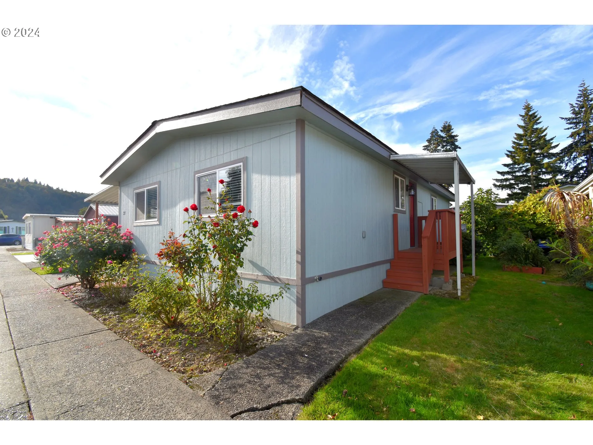 Welcome to this remodeled doublewide manufactured home in the Sunny Meadows Community, this charming residence boasts 2 beds 1 bath, a covered carport, 960 sq ft, FULLY UPDATED and renovated…newer roof, plumbing, water heater, siding, electrical wiring, freshly painted interior and exterior. The living room, dining room, and hallways feature new laminate flooring throughout the house. A large kitchen with white cabinets leads to a roomy living room and dining space. All appliances included. Ready to settle in and call this your home, make an appointment today.