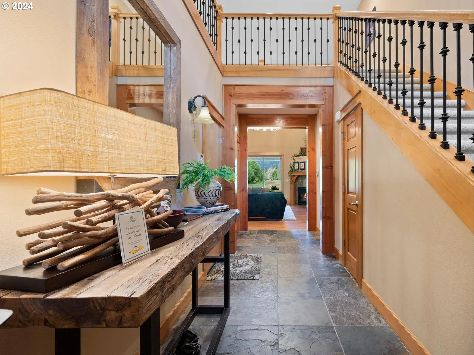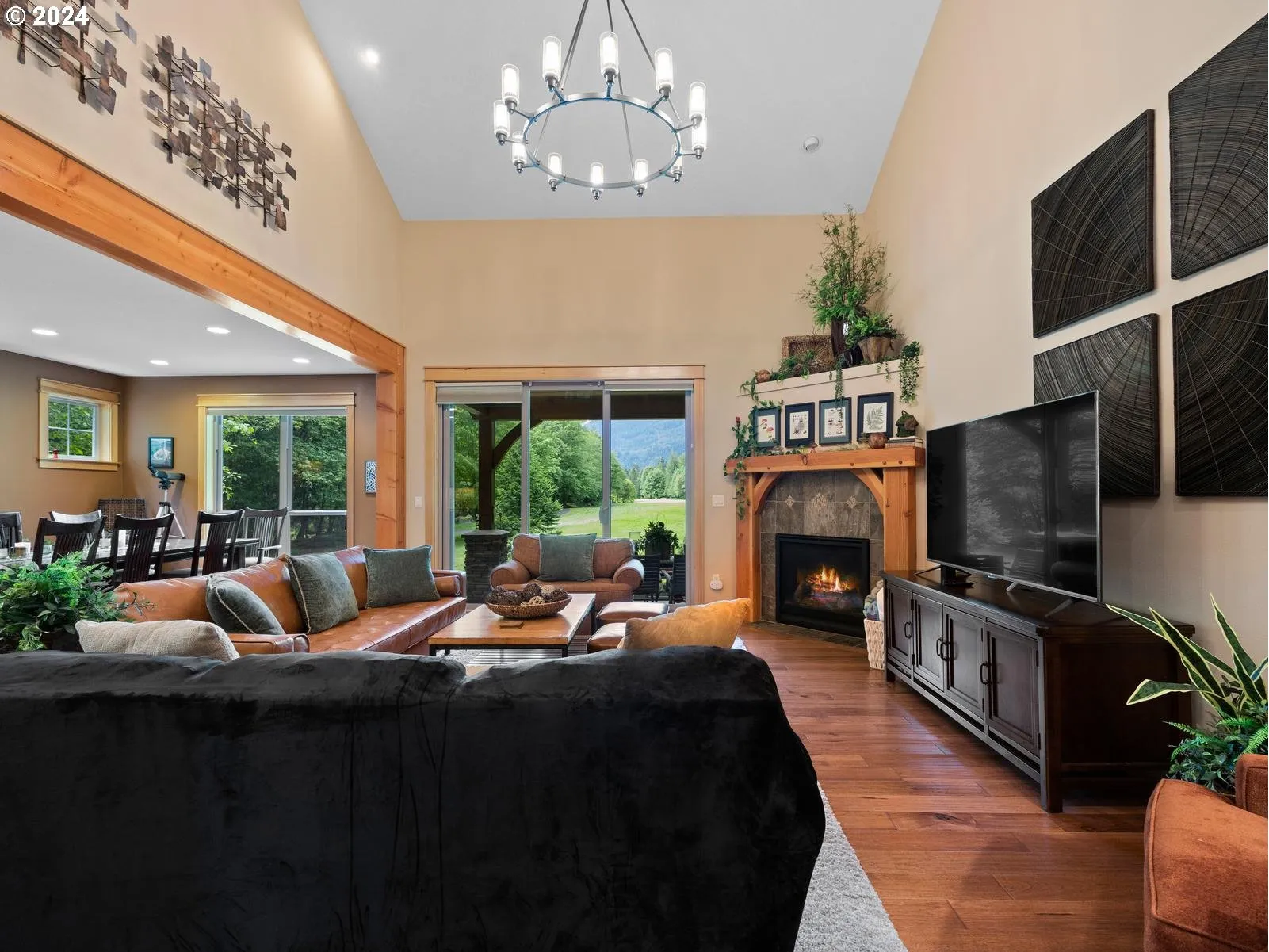 Perched on the 7th green of the Foxglove Course at Mt. Hood Oregon Resort, this beautifully appointed mountain home offers the ideal blend of luxury and nature. With short-term rentals allowed and existing bookings in place, this turn-key, fully furnished home is a fantastic investment opportunity or private escape.Warm timber-frame accents, vaulted ceilings, and hand-scraped hardwood floors set the tone for the inviting interior. The open-concept main level features a gourmet kitchen with granite countertops, stainless steel appliances, and a large island—perfect for hosting. Both the dining area and living room offer stunning views of the fairway, trees, and foothills, while the cozy gas fireplace adds mountain charm. Step outside to a covered patio with a private hot tub and take in the peaceful setting year-round.Upstairs, two spacious bedroom suites provide comfort and privacy. The primary suite includes a private balcony, walk-in closet, tile shower, and dual vanities. The second suite, also with an attached full bath, ensures guests feel right at home.Located within the Rippling River HOA, owners and guests enjoy access to resort amenities including a pool, hot tub, and tennis courts, plus discounts at the Three Nines Golf Courses and on-site restaurants. Just 12 miles to Skibowl, 20 to Timberline Lodge, and 25 to Mt. Hood Meadows. Whether skiing, hiking, biking, fishing, or golfing, this location is a dream for outdoor lovers year-round. Luxury, location, and income potential—schedule your private showing today!